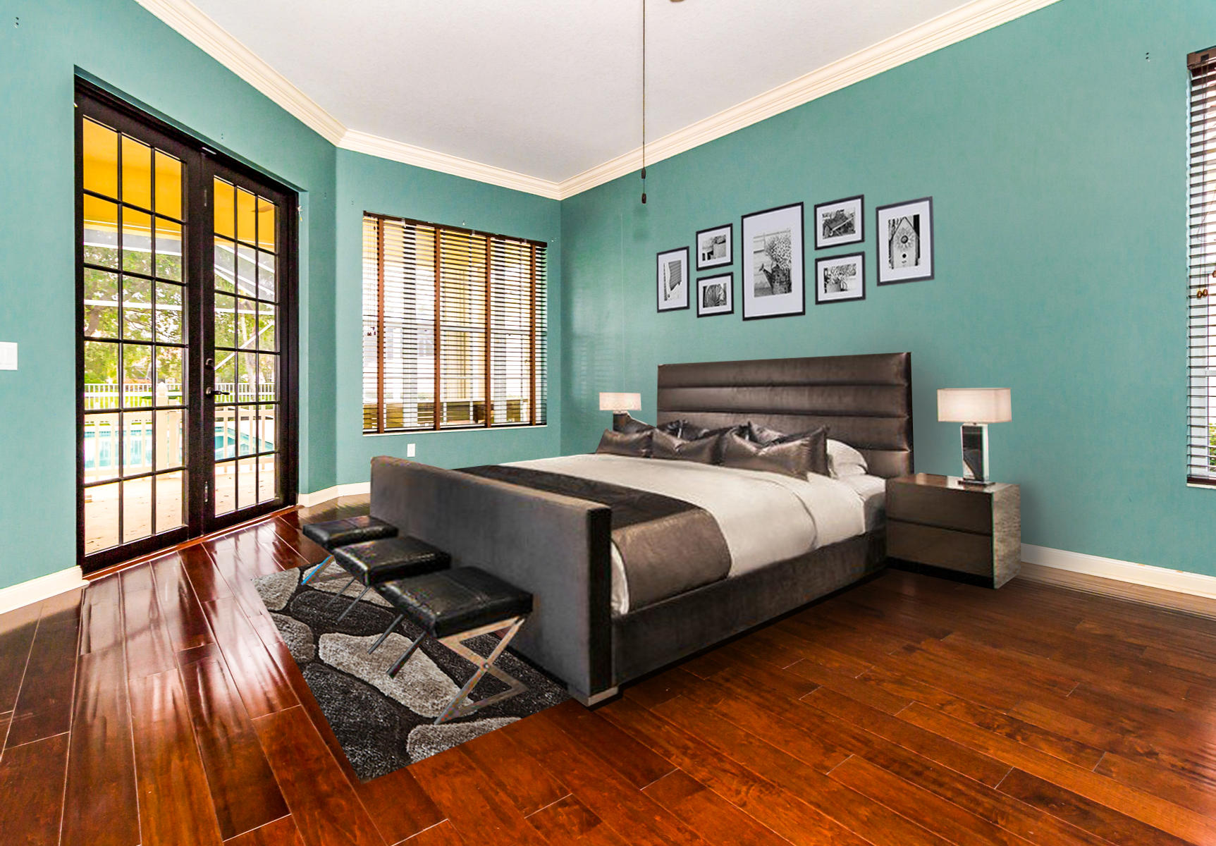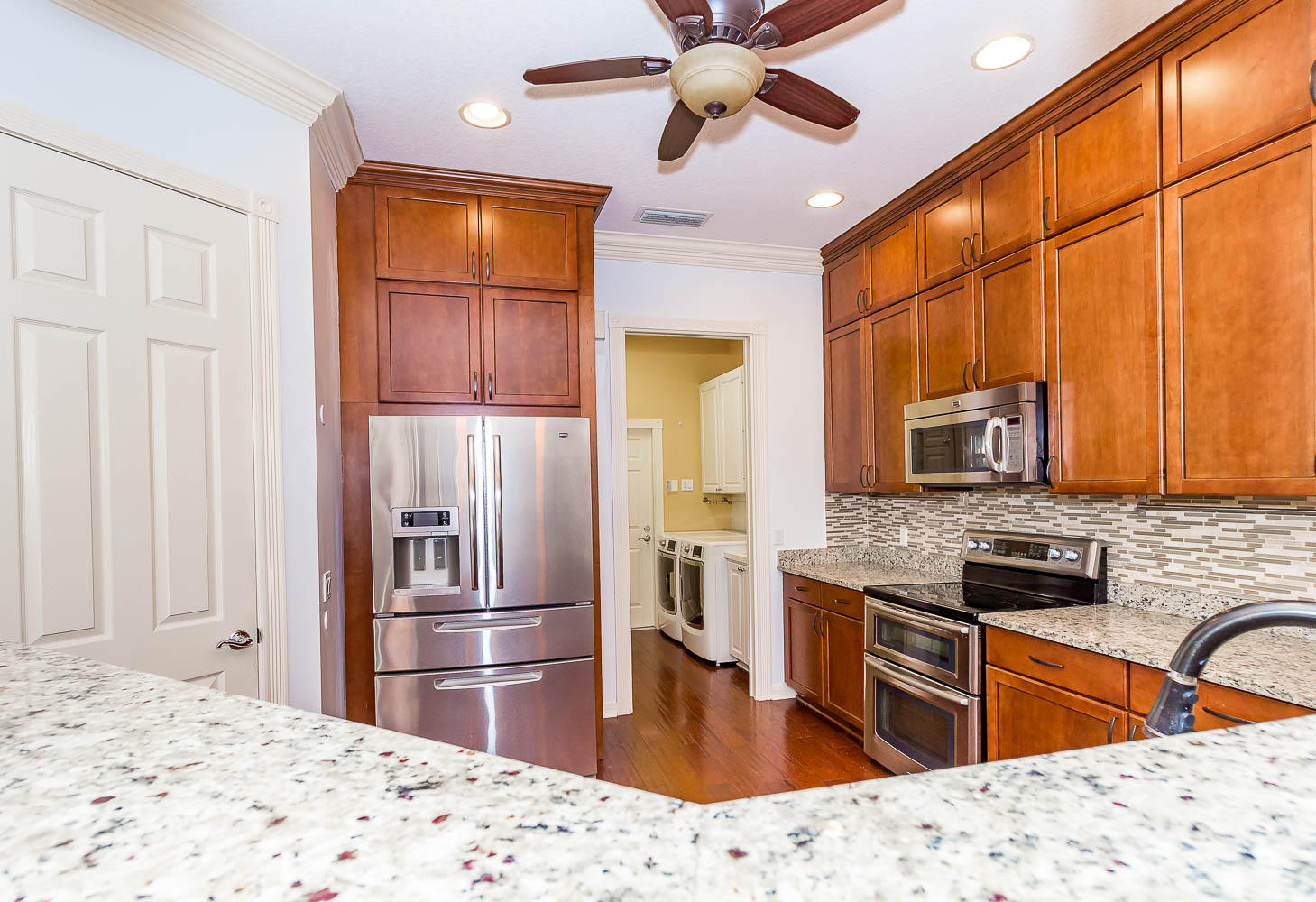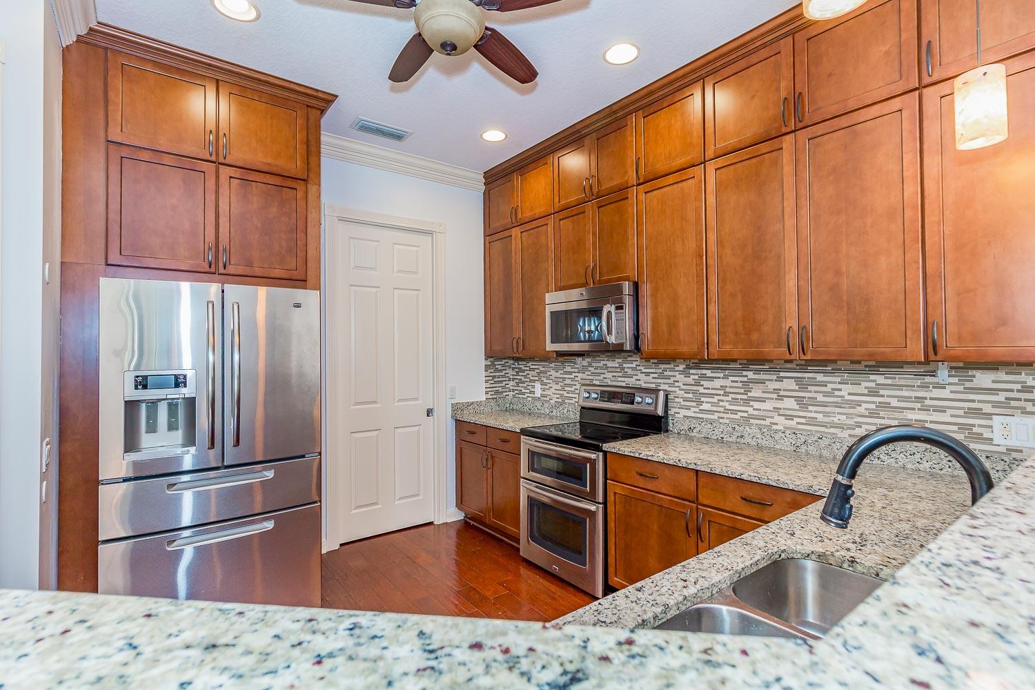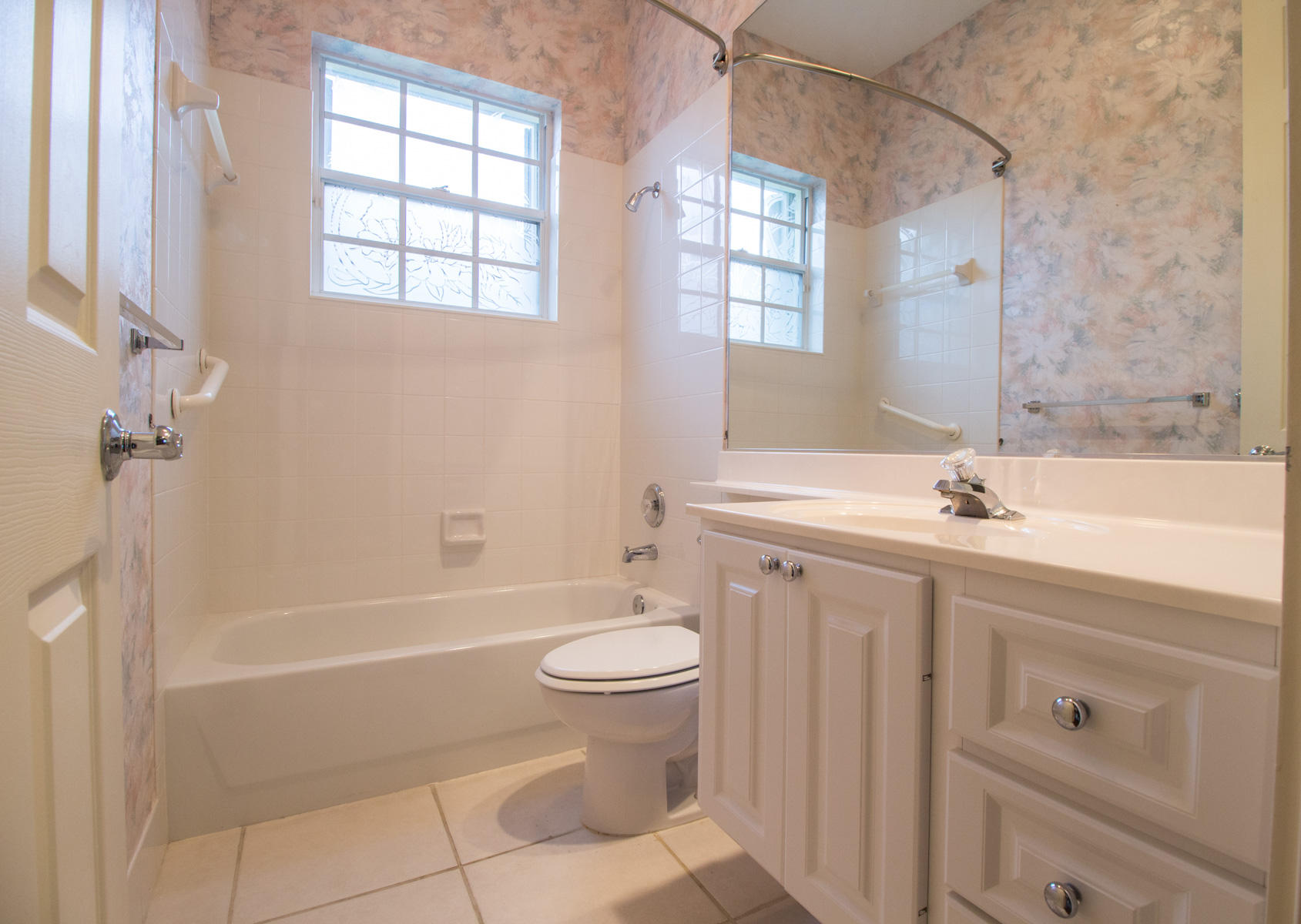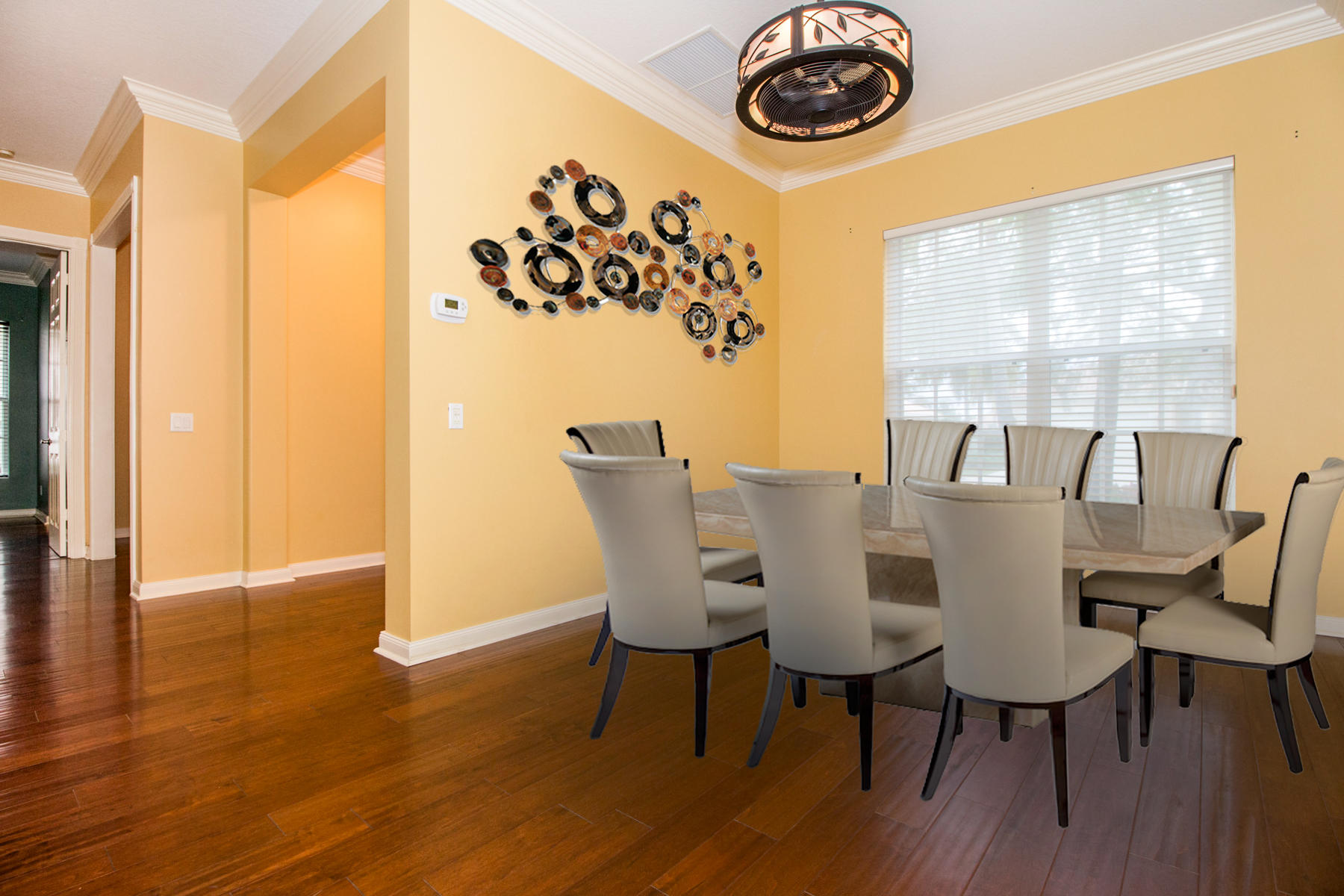Absolutely stunning lakeside pool home with 4 bedrooms + den, formal dining, 3 baths and 2,544 SF/AC. Located in Riverwalk, a pristine village like community in central West Palm Beach.Acquire this highly upgraded, move in condition property offering new custom kitchen cabinets, stainless steel appliances, granite counters and engineered wood floors covering the entire main living area. Storage space is plenty full with the addition of a bank of cabinets in the utility room and the garage. Updated A/C system, hot water heater and central vac offers are a plus. Custom French doors open to enjoy the outdoor living area having a screen enclosed in ground pool and garden. Storm and security protected with an accordion shutter system. A spacious, elegant home for today and years to come