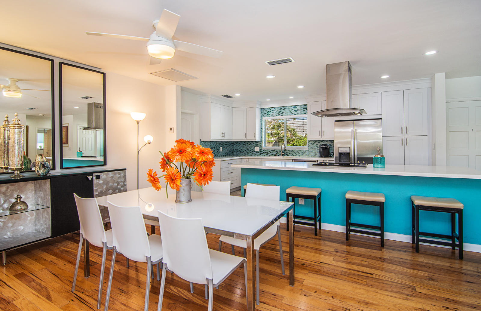 GREAT EAST LOCATION,HANDY TO EVERYTHING! BEAUTIFULLY UPDATED HOME ON GREAT STREET BOCA SQUARE! 3 BEDROOMS 2 FULL BATHROOMS & 1.5 CAR GARAGE. WOOD FLOORS, NEW KITCHEN, UPGRADED WHIRLPOOL REFRIGERATOR, STAINLESS FLOATING STOVE HOOD OVER LARGE KITCHEN ISLAND, W/ QUARTZ COUTERS, GLASS BACKSPLASH & WHITE SHAKER CABINETS, NEW LED CEILING LIGHTS, SMOOTH CEILINGS, NEW KOHLER TOILETS, BRICK PAVER POOL DECK GREAT FOR ENTERTAINING.NEW AC 2018, LARGE MASTER BEDROOM w/ SITTING AREA & TWO NICE CLOSETS. PGT IMPACT WINDOWS & DOORS W/ HURRICANE CURTAIN FOR FRONT DOOR, HURRICANE RATED NEWER GARAGE DOOR. FRESHLY PAINTED INSIDE & OUT & NEW CARPET IN BEDROOMS, HEATED SALT WATER POOL SYSTEM, GREAT YARD W/ TREE HOUSE. GREAT SCHOOLS, ADDISON MIZNER ELEM.,BOCA RATON COMM. MIDDLE, & BOCA RATON HIGH, CLOSE TO FAU.