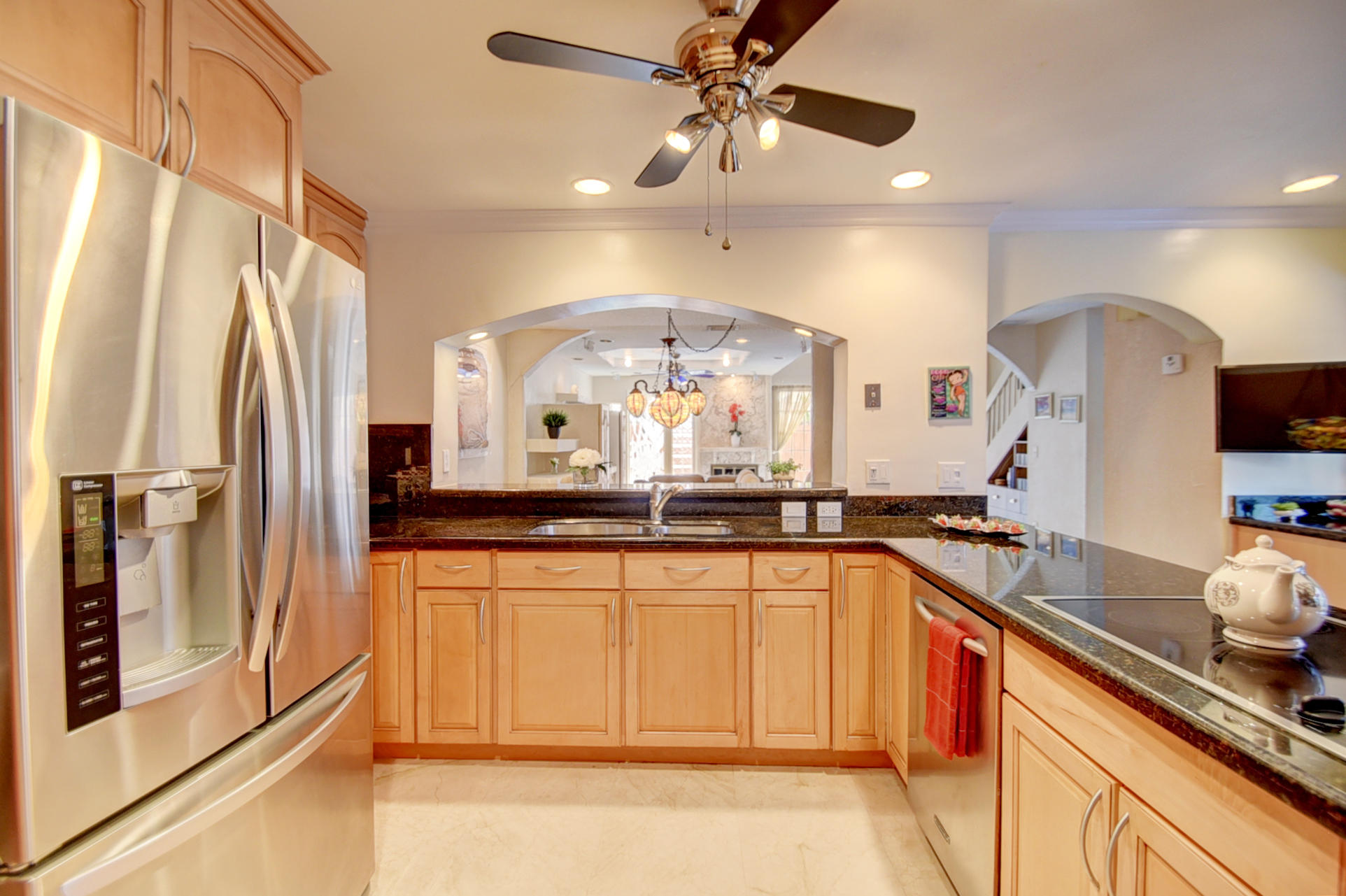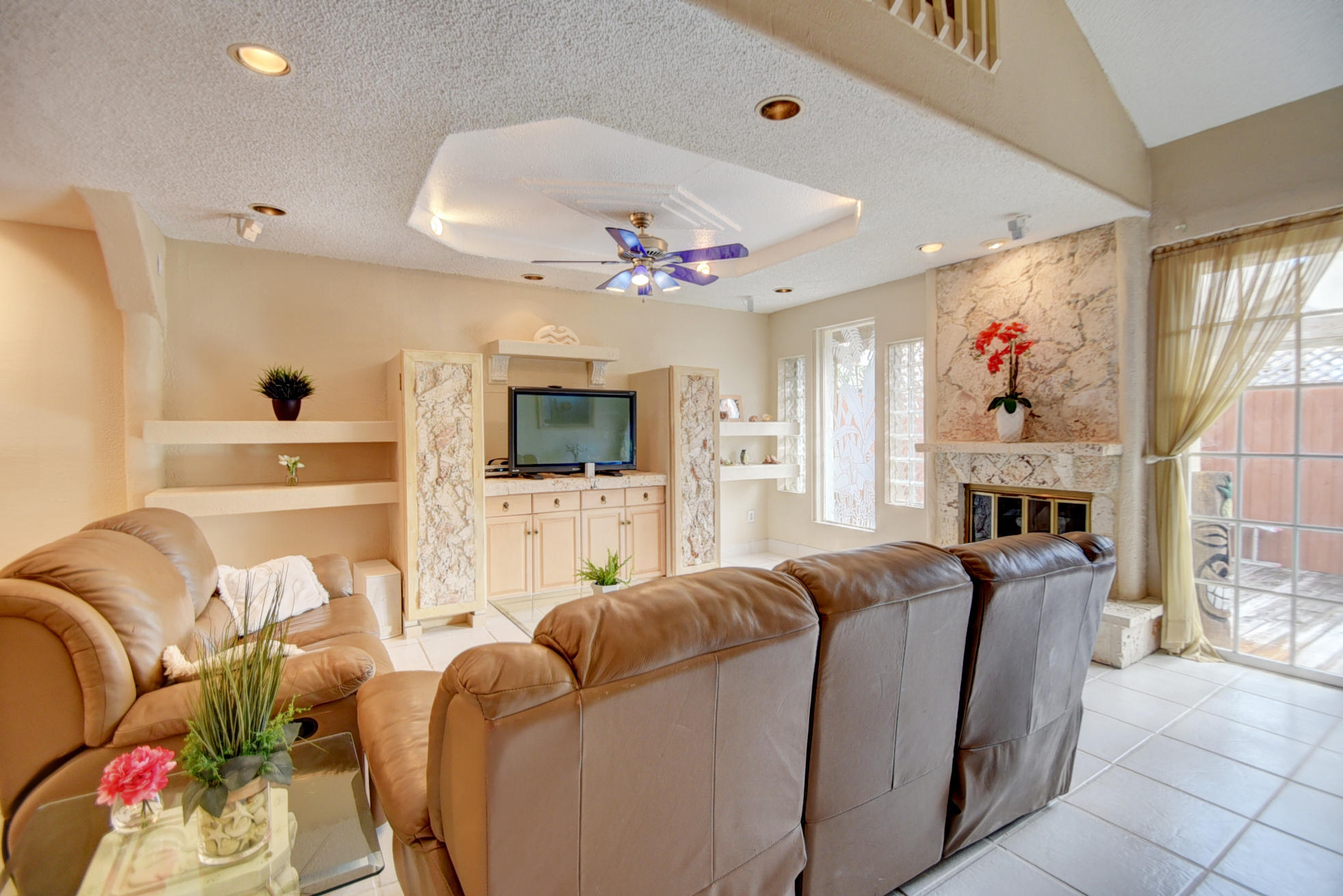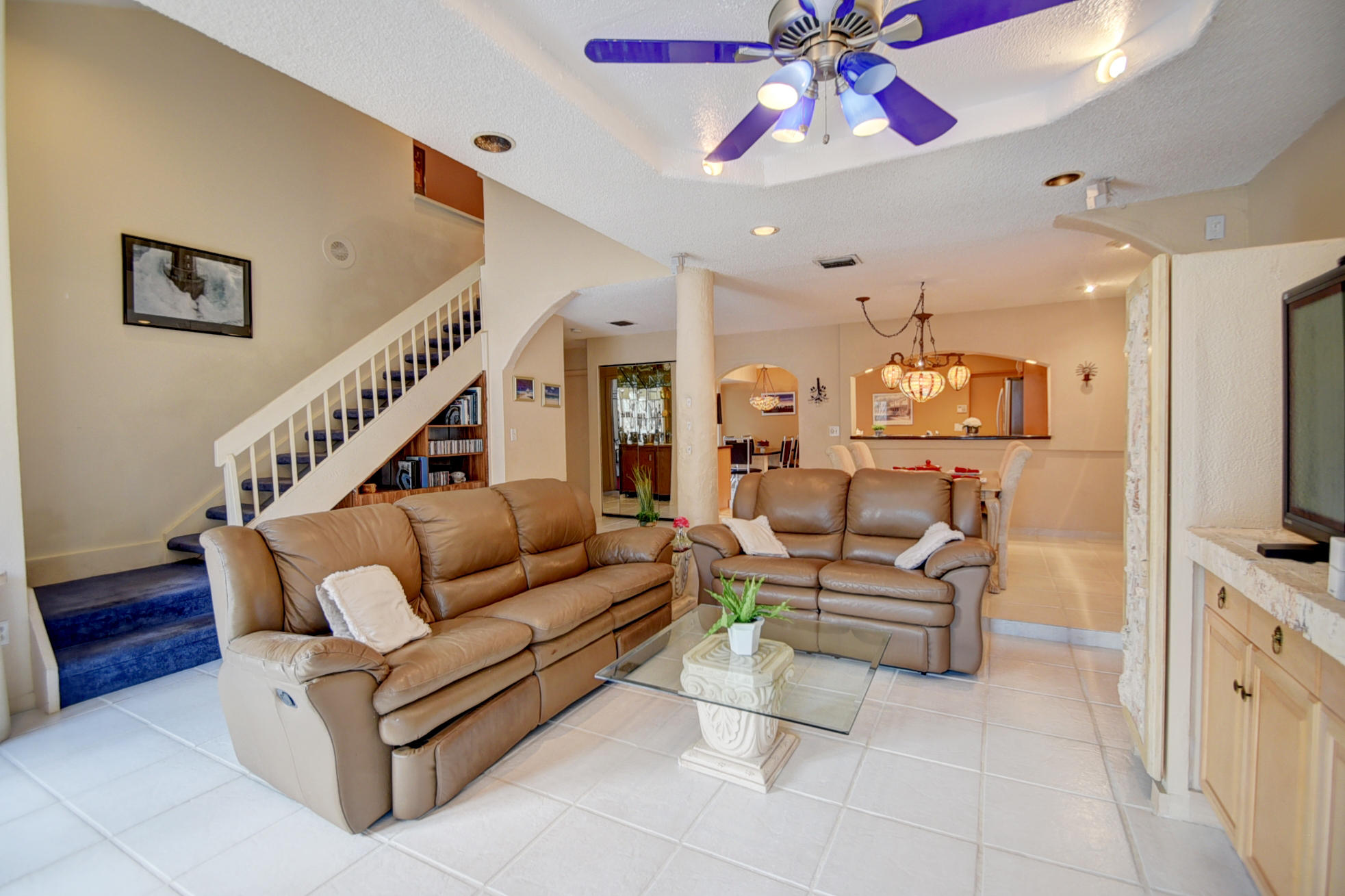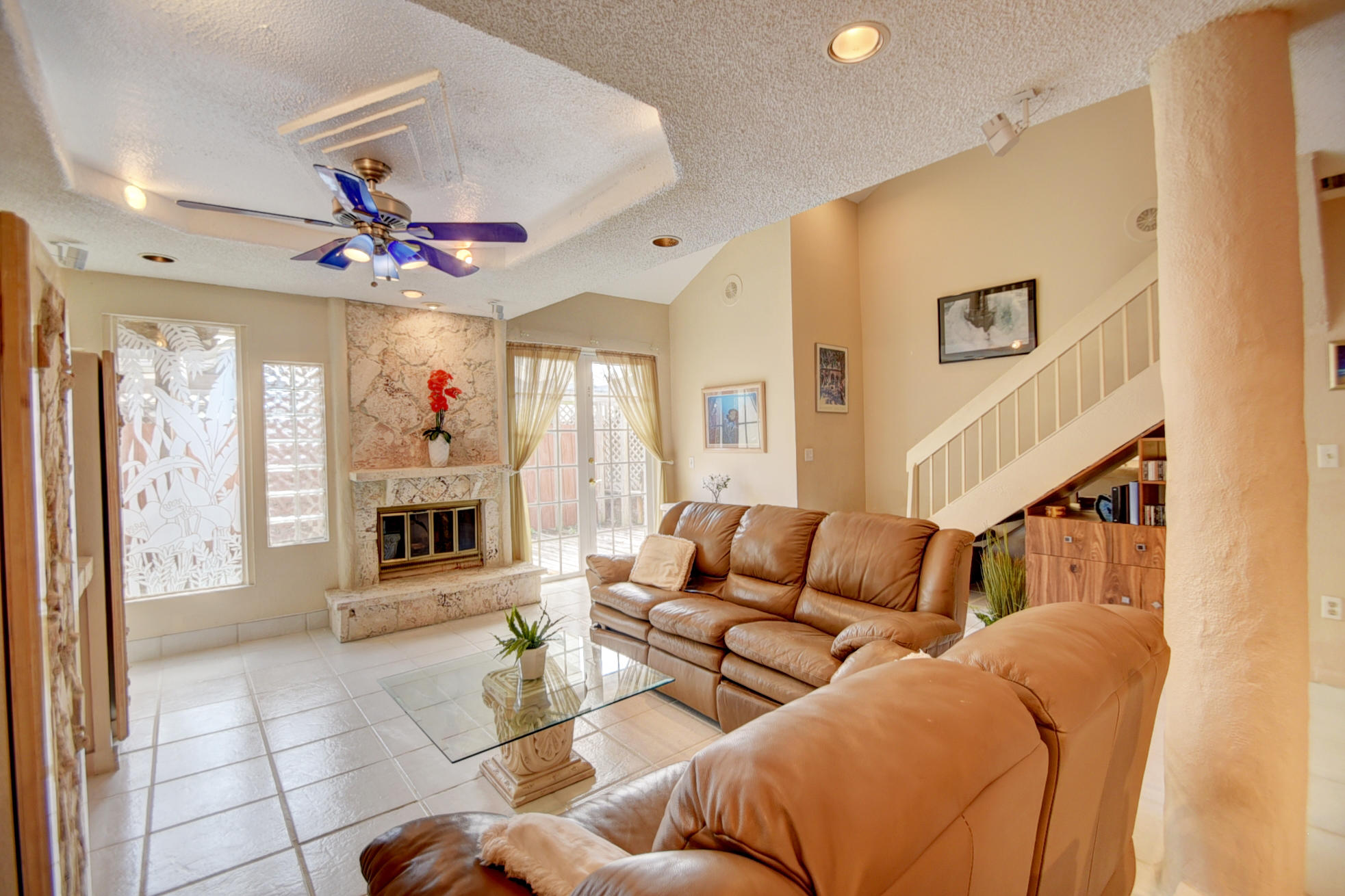 Centrally located in Boca Raton, enjoy this charming 2 story townhome. Walk in through your own gated paved private courtyard w/huge pool. Featuring 4 beds/2.5 baths/2 lofts/2 car garage. Updated kitchen w/built in double ovens,wine cooler,stainless appliances & granite counter tops. Updated bathrooms w/marble. Coral fireplace in the living room w/french doors leading to huge outside deck, formal dining room, downstairs master suite w/large walk in closet. Upstairs has 3 bedrooms, 2 lofts + balcony w/ pool views. High ceilings & open floor plan gives a feeling of space. Great location! Walk to A+ rated Del Prado Elem & places of worship. Low HOA fee only$210/month includes exterior paint/lawn/basic cable/community pool/pet friendly