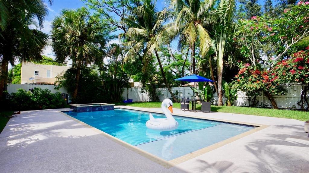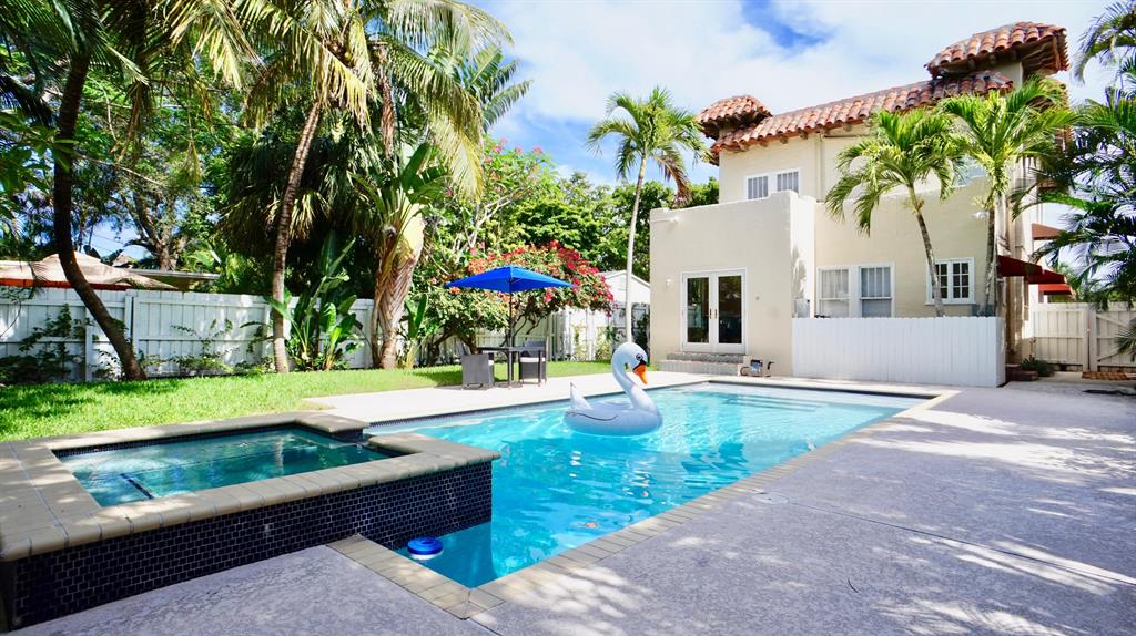 Welcome to this delightful Mediterranean home! This home is a historic showcase in Flamingo park, also known as the ''Mushroom House''. The Mushroom House features open living areas, Living Room with a fireplace, Florida Room and a Formal Dining Room. The formal Dining room has french doors that lead to the eastern garden. Home has beautiful finished wood floors and grand windows allowing the natural light to come into the property. The kitchen has been remodeled to perfection! The bonus room downstairs is perfect for entertaining since it has two beautiful french doors leading to the spectacular backyard and an immense pool with a spa! Three spacious bedrooms and an updated large full bath are upstairs; come see this stunning home today!