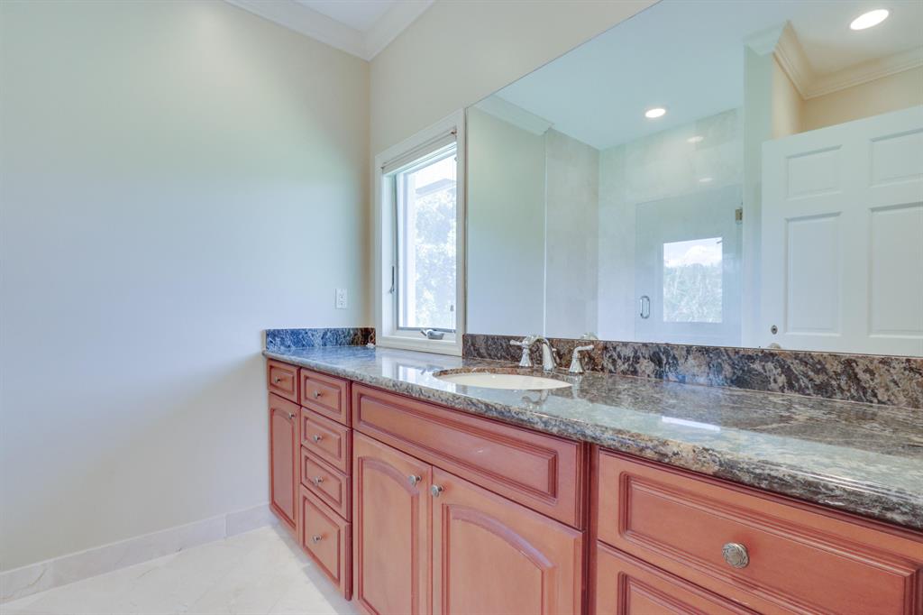 LOCATION LOCATION LOCATION! Beautiful pool home situated on .86 of an acres IN THE PRESTIGIOUS ''ESTATES'' section of Boca Bath. Surrounded by stunning 5000+ sq ft homes built after 2000. Very private beautiful yard, this spacious 3 car garage home is ready to move in, renovate or build to your desire. 5 large en-suite bedrooms. Spacious eat-in kitchen features wood cabinets and granite counters. Light and open floor plan has volume ceilings. Split bedrooms. Terrific study/den perfect for home office. The guest/children's wing with bonus computer/study area. Features include; marble floors, coral fireplace, sky lights, built-in/walk in closets. Hurricane ready with electric hurricane shutters. Superior location on one of the most sought after streets in BB&T very near world class shopping.
