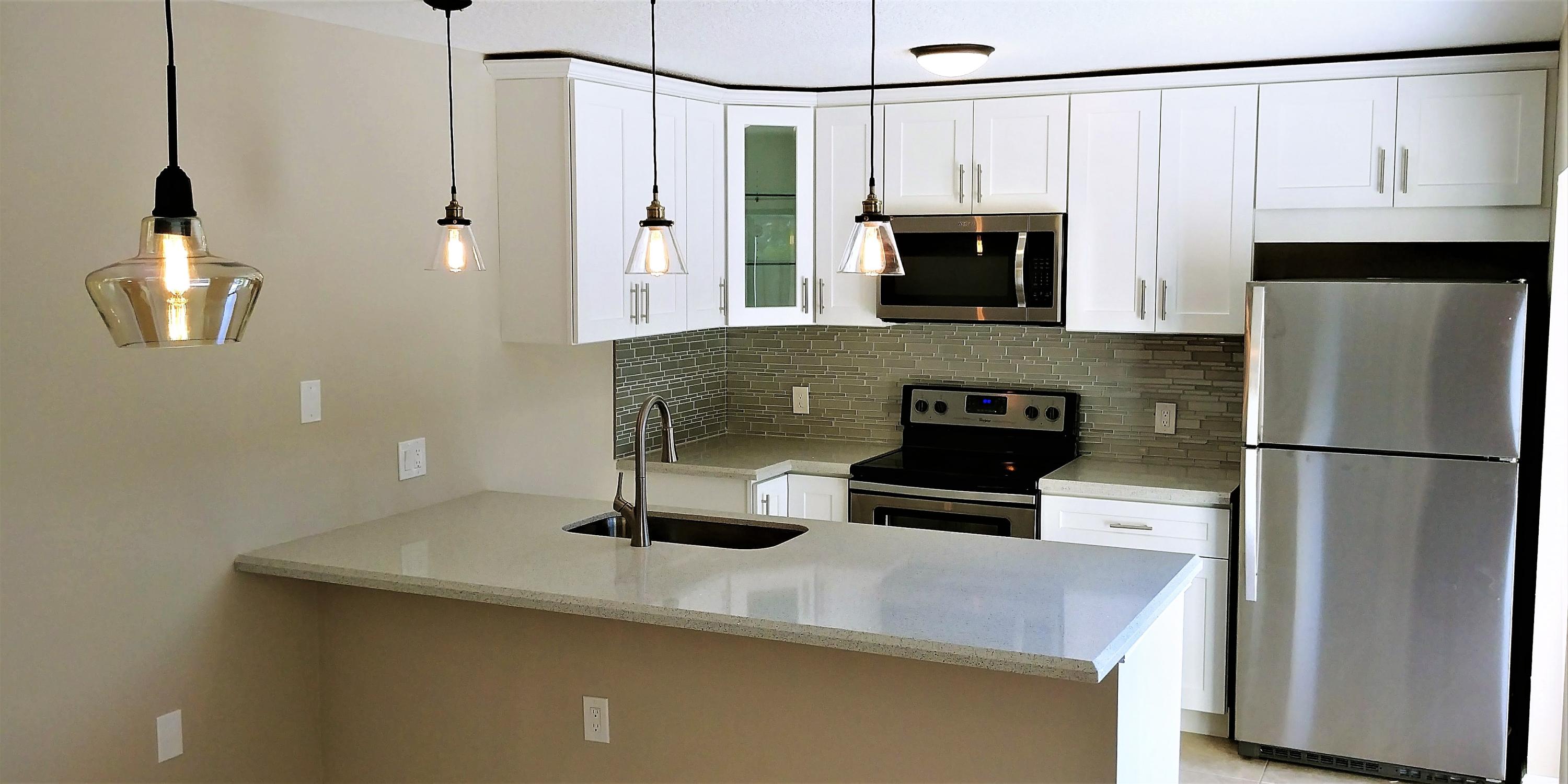 WOW!!! This Sandalwood townhouse has been completely remodeled and is basically a brand new home!! Enjoy your view of the canal and huge amounts of green space right outside your totally private entrance. The Chef's kitchen has been opened up and features an oversized island, white shaker style soft close cabinets, brand new stainless appliances, quartz counters, and mosaic tile backsplash. The kitchen also features custom pendant lighting that really make the island pop. The downstairs living area has fantastic ceramic tile that extend into the storage area and powder room. Entire home has been freshly painted with new light fixtures and ceiling fans. The cabinets in the laundry room have been replaced along with the vanity, counter top, and hardware. All of the baseboards