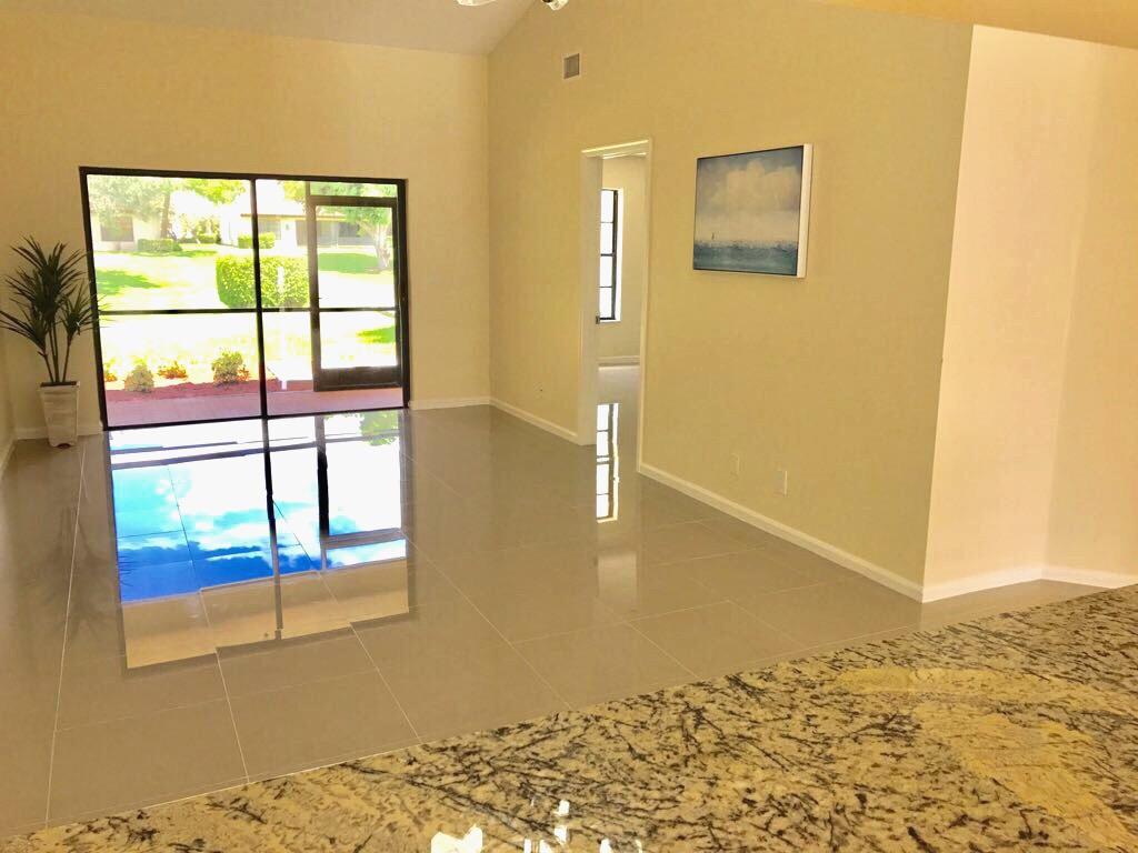 Fully renovated Villa/Townhouse in Windwood! Beautiful porcelain flooring throughout entire unit, kitchen complete with granite countertops and BRAND NEW GE Stainless Steel Appliances. All NEW electrical and lighting give this unit a tasteful modern feel. Upgraded plumbing, landscaping and freshly painted. Beautiful screened patio has partial lake views. Incredible location in East Boca - just a mile from the beach, minutes to Mizner Park, FAU, Schools, and more. Community is very well maintained and safe; featuring 2 clubhouses, 2 tennis courts, 2 pools, and lake...ALL WITH LOW HOA. Pets welcome- up to 2 pets, max 40lbs each. Can be rented immediately. TITLE WORK COMPLETE - READY FOR QUICK CLOSING