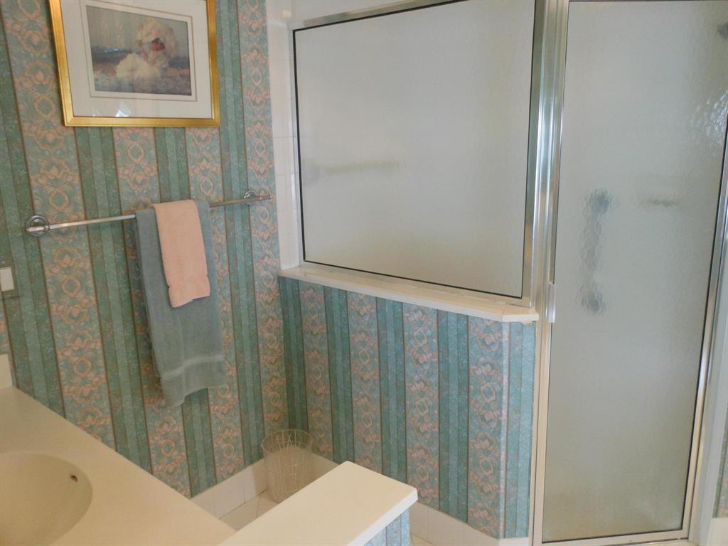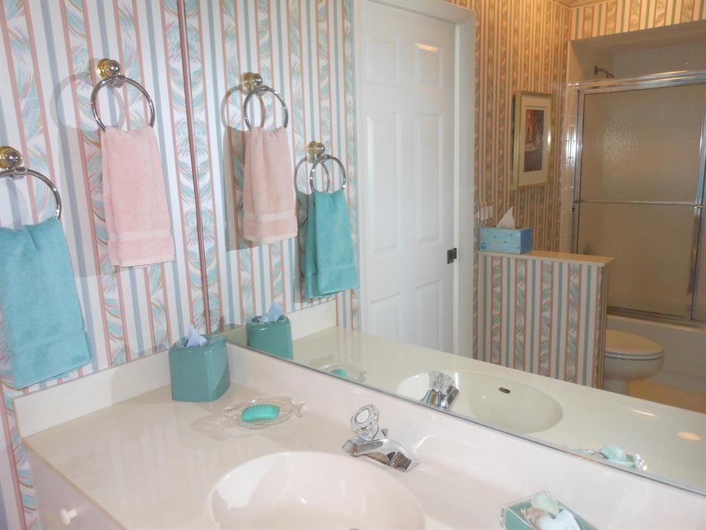 This spacious 3-bedroom 2.5-bathroom home is waiting for you. The master bedroom is on the first floor. There is an open kitchen with a breakfast area which overlooks the huge family room. The back end of the house was extended so that gives you lots of extra space and an even larger living room. The patio is screened in. There are high vaulted ceilings with knock-down textures. The master bedroom has two walk-in closets. The master bathroom has a separate tub and shower and two vanities with a separate make-up vanity as well. Because the window in the bathroom has block glass it is bright and sunny all the time. The laundry room is separate on the main floor. Upstairs there is a sitting area (or library area for relaxing if you choose) plus two bedrooms and a Jack and Jill bathroom.