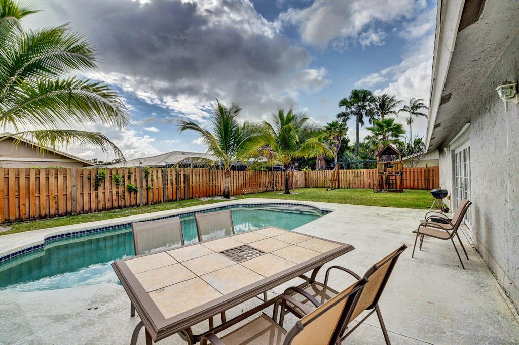 Great interior location on a prime oversized fenced lot with a big back yard. Sunny and bright 3 Way split plan with large master. Spacious combination Living / Dining area with vaulted ceilings and knockdown finish. Mostly Impact windows with shutters where needed. Short walk to new community playground. A rated Calusa, Omni and Spanish RIver High schools. Low HOA fees. A great place to call home with convenient access to shopping, office parks, and major highways.