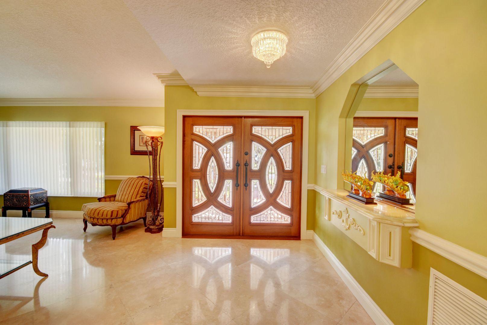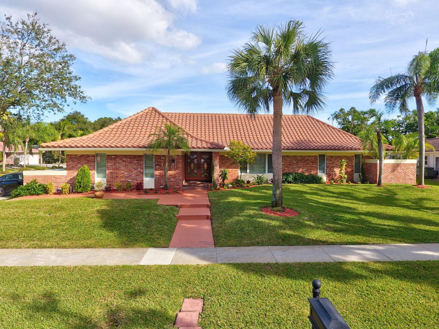 Fabulous single story 4 bedroom, 3 bath pool home on an interior corner lot. New roof (2013), impact windows/ doors. Two areas shuttered. This home features a split bedroom plan, a gourmet kitchen from a top designer, crown moldings, a bonus room 27 x 13 with a custom wet bar, brazilian cherry plank floors in three bedrooms. All bathrooms are renovated with amazing high end features! 24 x 24 Saturnia floors in all main areas. A/C replaced 2013/2014, custom closets. Hot water heater 2017. Well for sprinklers and gutters surround home. Property is situated in a 24 hour man-gated community that features a beautiful park, tennis courts, basketball and a play ground. Centrally located near I95 and Turnpike. Run don't walk to view this property. It will not last!