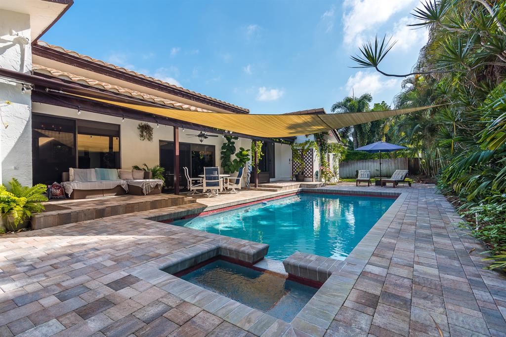 Gorgeous pool home on an oversized lot in sought after Colonnade. With 2,132 sf of living space this home has 3 bedrooms & 2.5 baths, bright & airy living area with volume ceilings & skylights, travertine tile & wood flooring, eat-in kitchen with granite countertops & stainless steel appliances. Master bedroom has a large on-suite bath with access to the pool. Fully fenced & beautifully landscaped backyard features pool & spa, newly updated deck with Italian pavers, outdoor shower, covered patio & a large side yard. The garage is insulated & air-conditioned. Located in the community & just few steps away from the home is Boca Tierra Park with tennis & basketball courts, playground & more. A-rated schools, plenty of shopping & dining nearby, & just a short 10-minute drive to the beach!