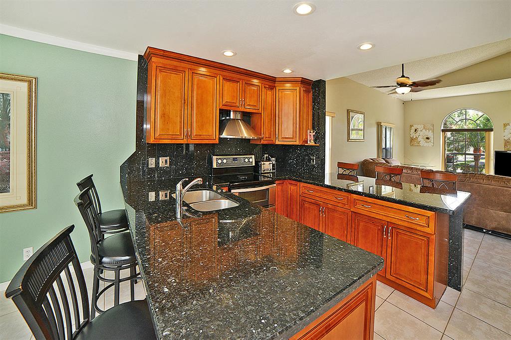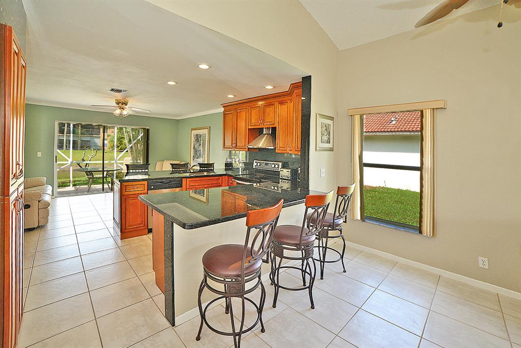 Beautifully kept single family home with serene lake views. Gorgeous kitchen with two eat in counter tops, new neutral paint in living room, new vanity in Master bathroom. This home has been meticulously maintained by the owner and is a true gem. Great location next to cul-de-sac, newer roof and accordion shutters are a plus! Great community with restaurants and shops nearby and A rated schools!