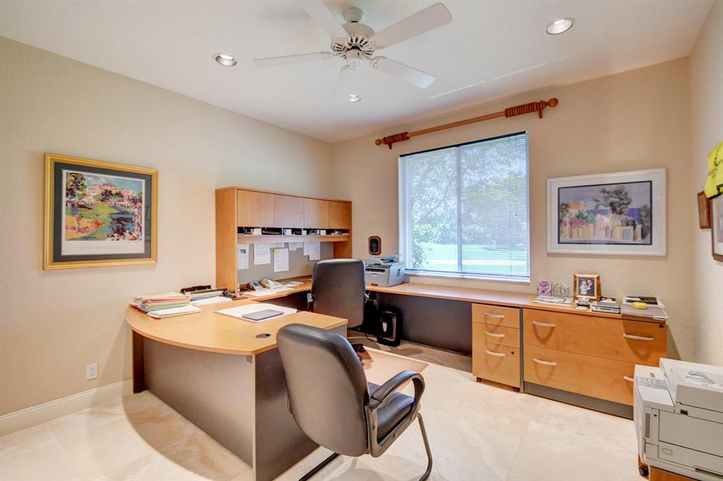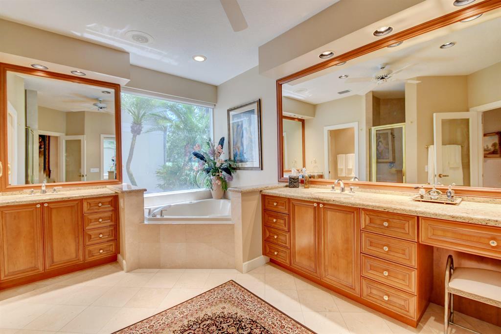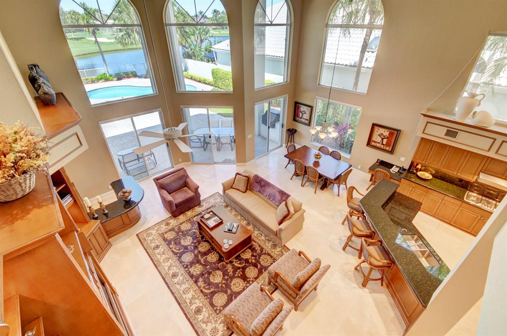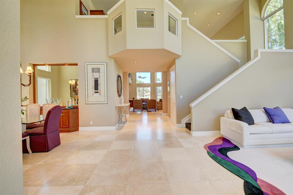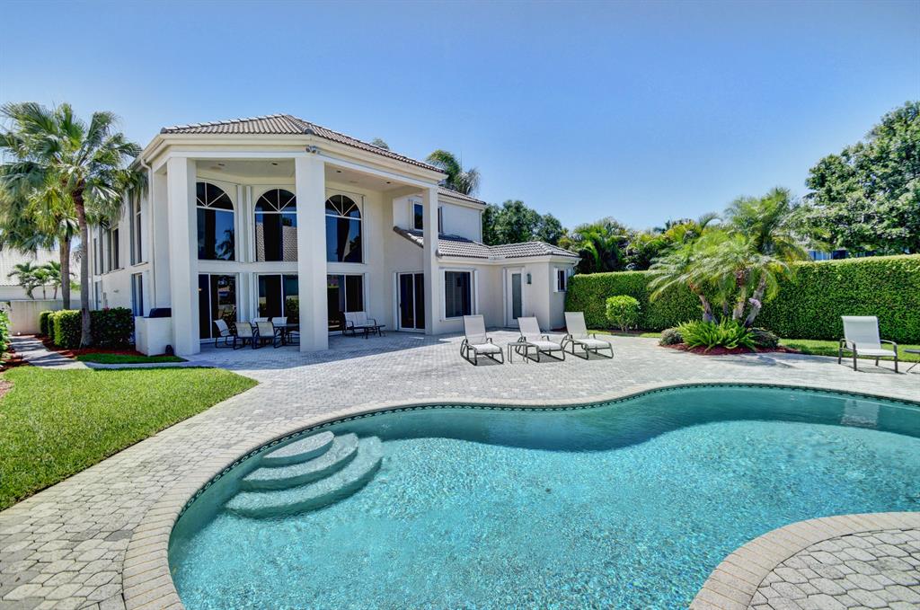 Elegant home with golf course and lake view located in the award-winning club of Broken Sound in the heart of Boca Raton. Soaring 20 foot ceilings, gorgeous marble tiled floors, 3-car garage, and a fabulous outside entertaining area make this the ideal home for Florida living. Kitchen includes wood cabinets, granite countertops, propane-gas stove, double electric ovens, water filter, and Monogram refrigerator. Master bedroom, located on the main floor, offers built out walk-in closets. Master bathroom includes his and hers sinks, separate shower and jacuzzi tub, plus an additional linen closet. This bright house features a newer S-tiled roof (2009) and newer flat roof (2007), 3 AC units (2017/2007), whole house water filtration system, hurricane shutters, 500 gallon in ground propane