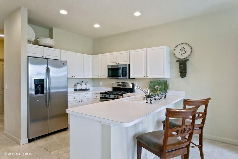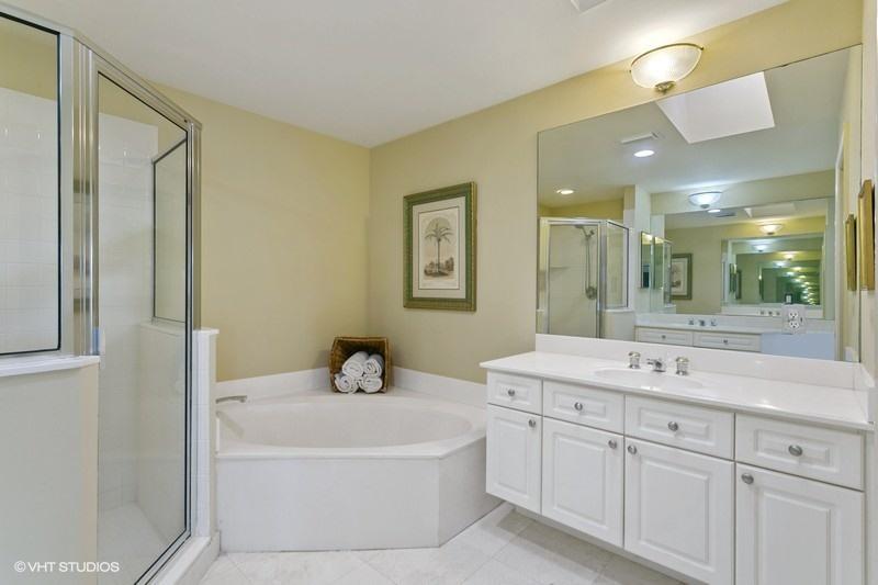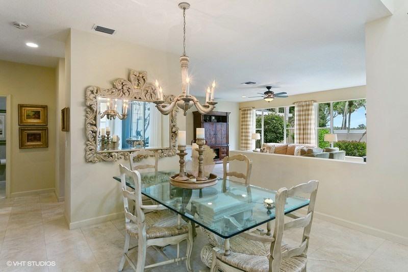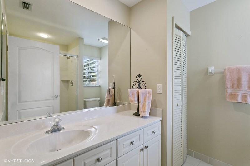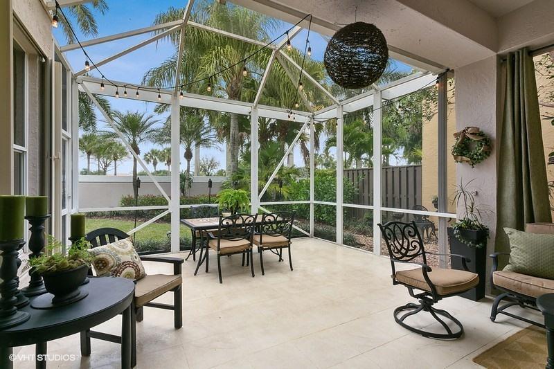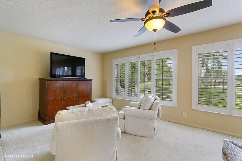 An exceptionally clean home conveniently located between the clubhouse and the main entrance. Beautiful travertine marble flooring installed on most of the main level, with new carpet in the front bedroom and new wood laminate in the upstairs bedroom. A spectacular view of the Heritage course from the expanded master bedroom that includes a sitting area and plantation shutters which frame the view and allow for spectacular natural light. On the lower level is a multifunctional bedroom which could become a library, media room, or den. Interior updates include: 2 new A/C compressors and handlers, new tile in upstairs bathroom, most lights replaced with LED, and a newer gas water heater. Exterior features include a large screened veranda, accordion-style storm shutters, and new landscaping.