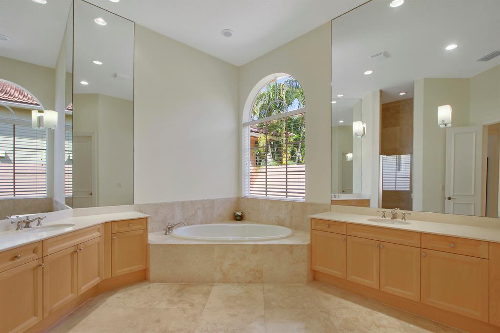 This single story 5 bedroom w/open layout is in the most private corner of this renown exclusive community in Boca Raton. , merely exile them & their romantic interest with a gallon of laundry detergent to the detached guest house w/separate entry. Bedrooms are so well split that any overzealous violin student, or crew of noisy ''video gamers'' are all out of earshot. 4 separate outdoor patios on opposite sides of the house provide separate areas for evening entertainment. A natural gas heated Southern-exposed salt pool means low-cost ideal swimming conditions & tiny electric bills. This property was constructed exclusively using only the highest quality finishes with no upgrade options spared.