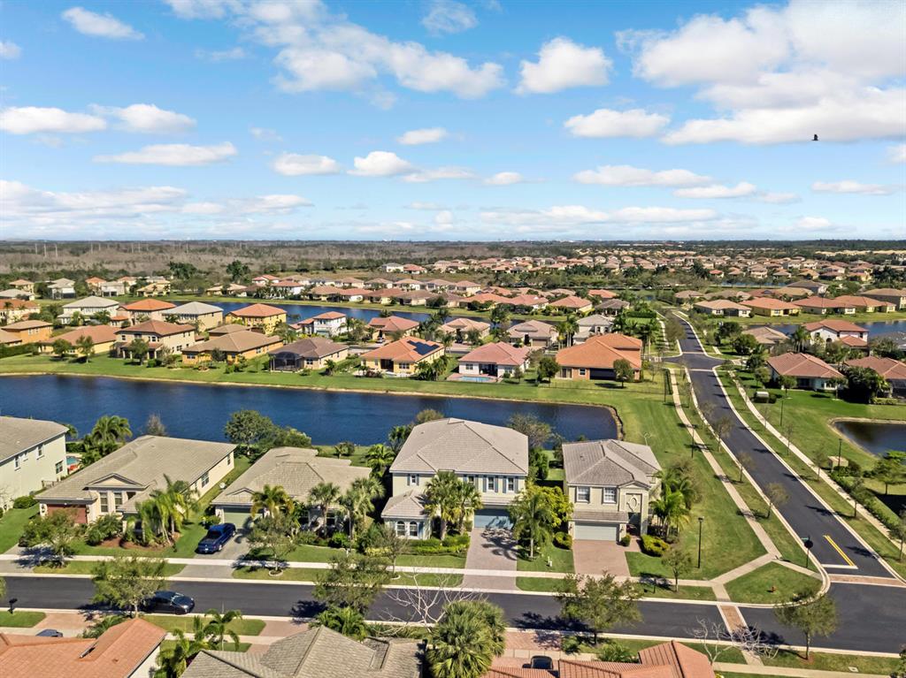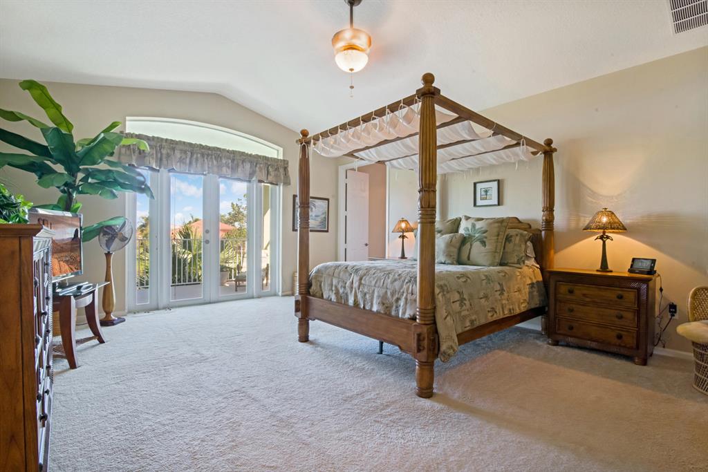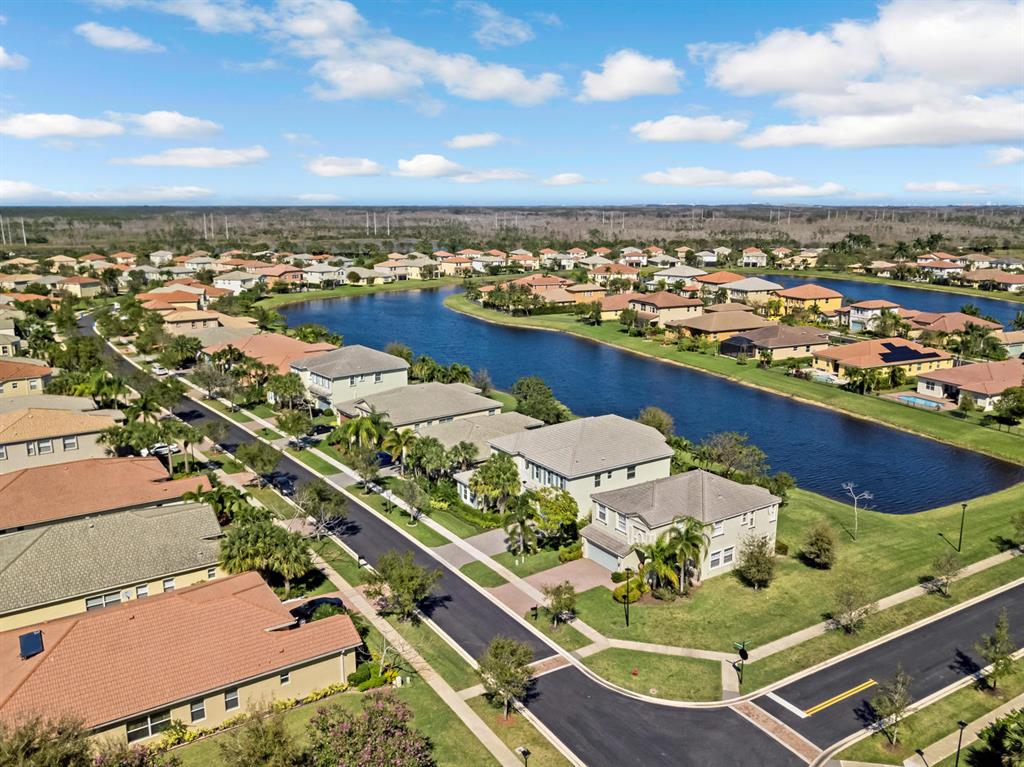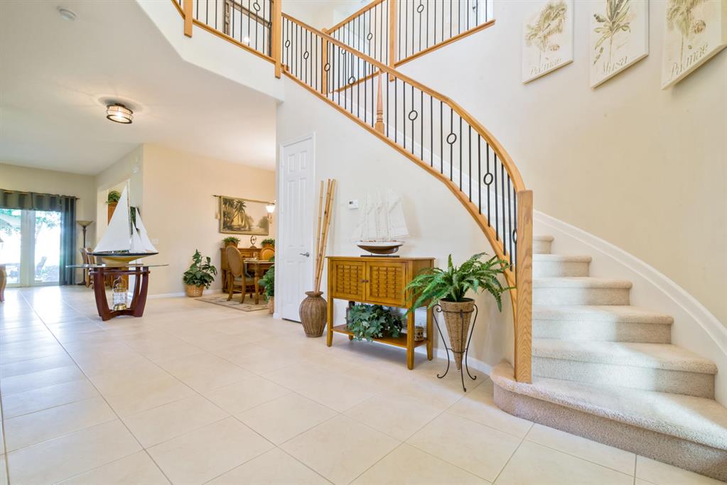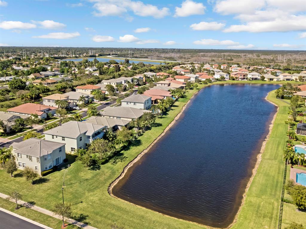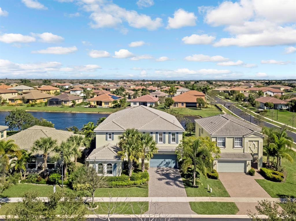 Beautiful lake front home situated on an expansive lot in the gated community of Portosol! Step inside and enjoy spacious living areas with an open floor plan, a gorgeous grand staircase and serene lake views. The gourmet kitchen is equipped with lots of cabinetry and counter top space. Outside you can enjoy a spectacular backyard with long lake views. There is 1 bedroom downstairs. Upstairs you will be greeted by spacious bedrooms including a master suite with a luxurious master bathroom which includes a spa tub and separate shower and a gorgeous balcony. Lush tropical, private backyard. Tandem 3 car garage, 2 story balcony & total of 5411 square feet! Live the resort lifestyle in this well maintained community which features a fitness center, billiards room, outdoor basketball and