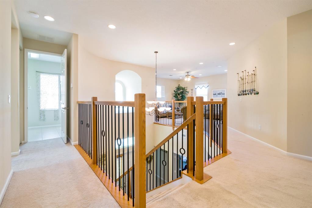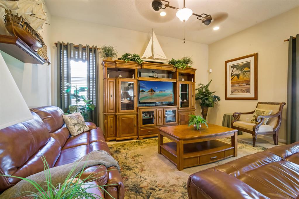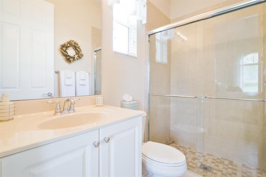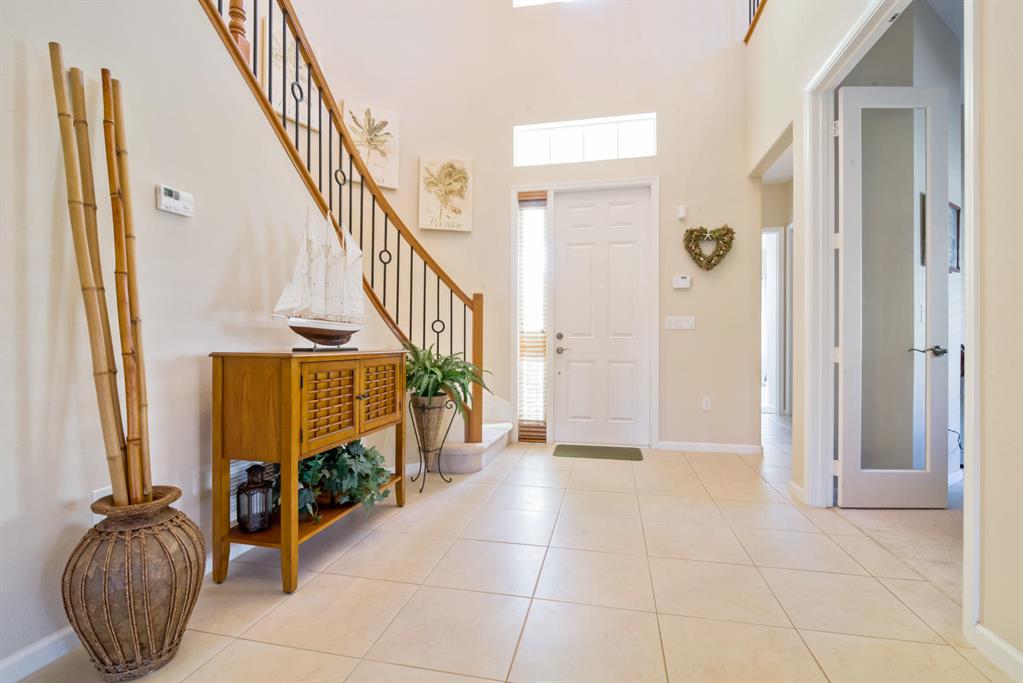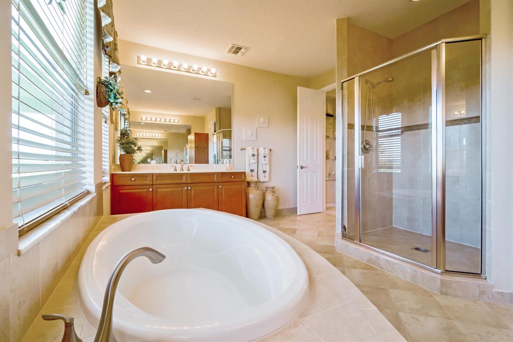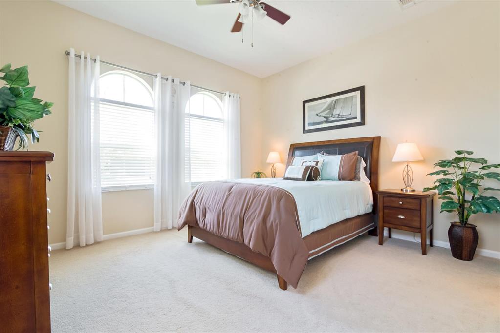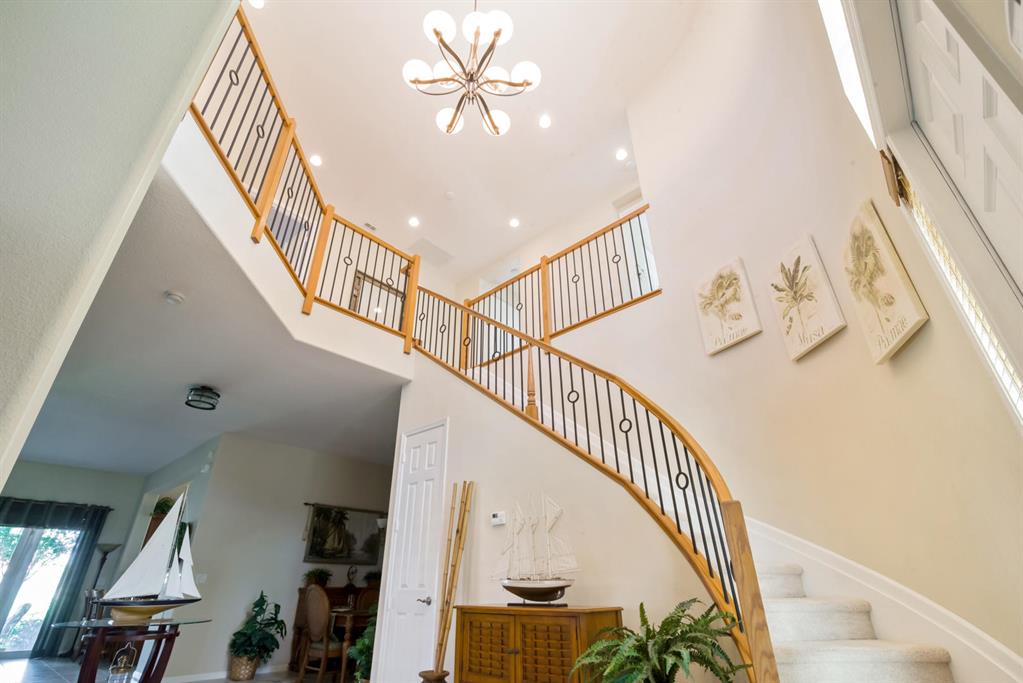Beautiful lake front home situated on an expansive lot in the gated community of Portosol! Step inside and enjoy spacious living areas with an open floor plan, a gorgeous grand staircase and serene lake views. The gourmet kitchen is equipped with lots of cabinetry and counter top space. Outside you can enjoy a spectacular backyard with long lake views. There is 1 bedroom downstairs. Upstairs you will be greeted by spacious bedrooms including a master suite with a luxurious master bathroom which includes a spa tub and separate shower and a gorgeous balcony. Lush tropical, private backyard. Tandem 3 car garage, 2 story balcony & total of 5411 square feet! Live the resort lifestyle in this well maintained community which features a fitness center, billiards room, outdoor basketball and