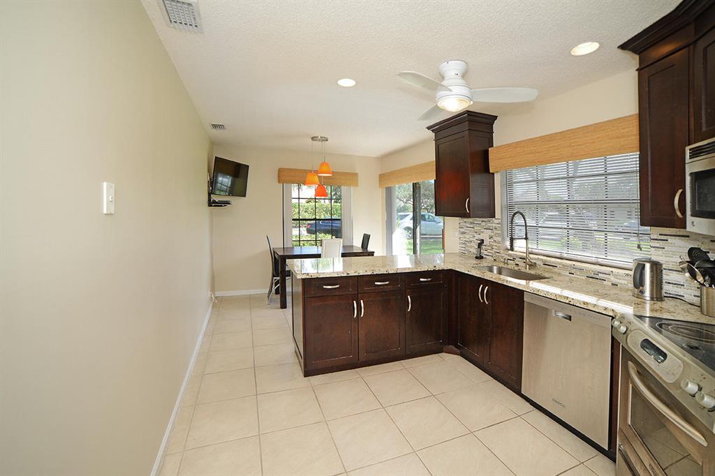 Stunning updated lake front home in Boca Raton! New roofs, gated community, tennis courts & community pool. Great community & great schools. Spacious 3 bedroom / 2.5 bath home with over 1,800sf under air! A must see. Laundry room inside! Master bedroom is downstairs! Huge screen-covered patio overlooking lake! Low HOA only $335/month.