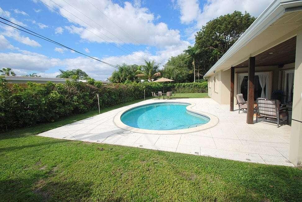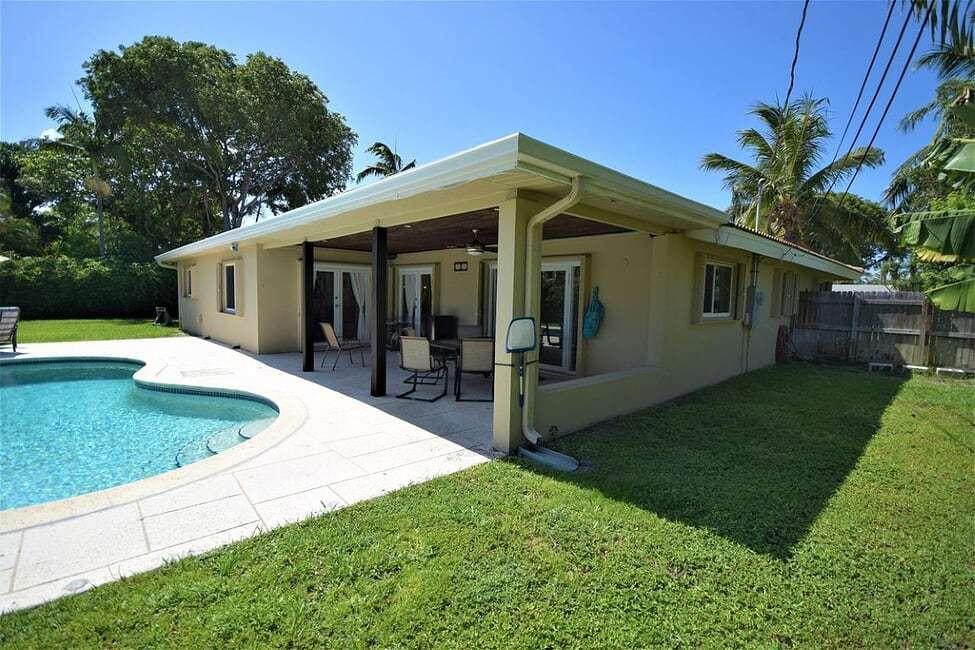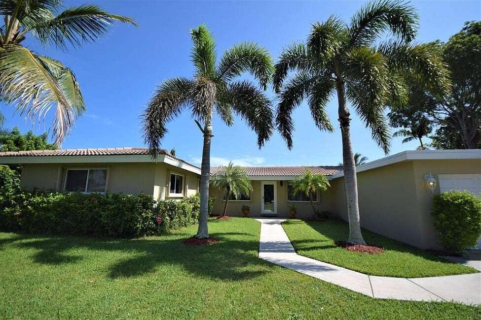 Updated 3/3/2 pool home situated on a prime 1/4 acre lot in East Boca! Bright and open split bedroom layout. Two master suites, both with ensuite baths and walk in closets! Updated kitchen with plenty of cabinet space, bar sitting area, granite counter tops, and tile back splash. Large fully fenced backyard with covered terrace, private pool and privacy hedge. Accordion shutter throughout installed in 2015. Fresh paint inside and out. Located blocks to the beach and minutes to Mizner Park, Atlantic Ave, and highly rated Boca schools.