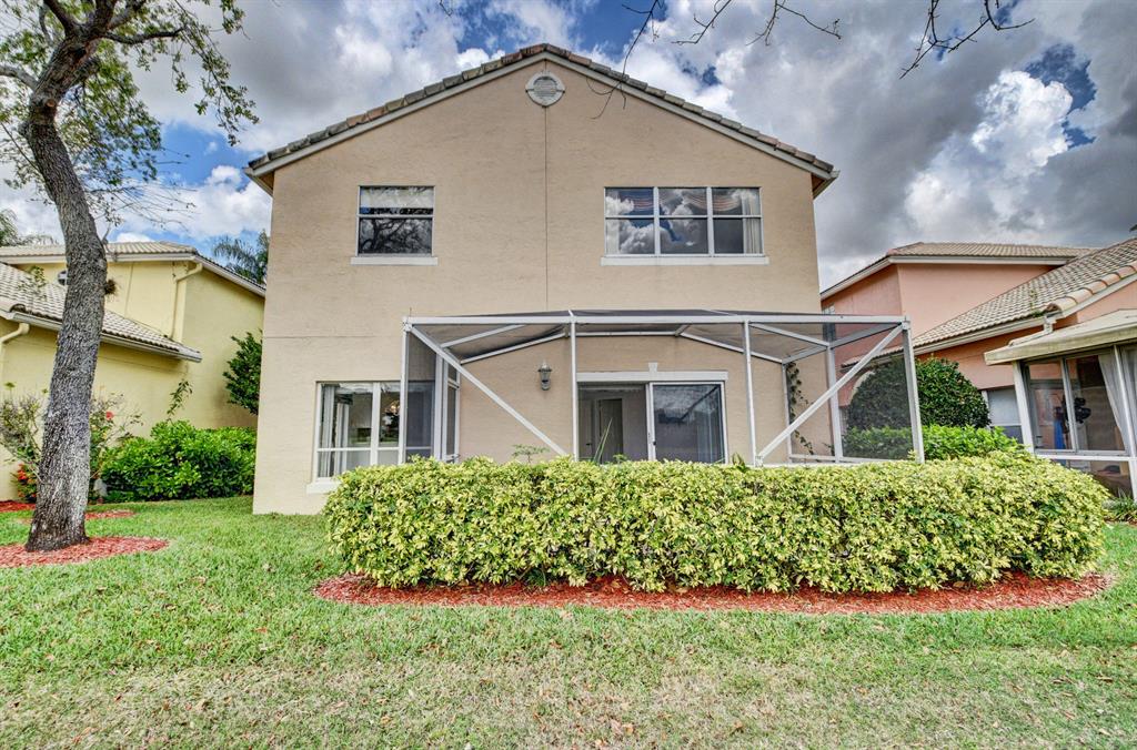 REDUCED TO SELL! Panache at Boca Pointe. A friendly, intimate single family home and guard gated community in a great Boca Location. Priced to sell to a lucky buyer looking for a fantastic layout and Southern exposure. This two story home is on a sought after golf course lot!! No club membership required. 4 large bedrooms upstairs and downstairs are the living room, dining room, separate kitchen open to family room, powder room and laundry room. Master suite has large walk-in closet. Long ONE car garage for storage. AC is 6 months old, hot water heater is 3 years old.LOW HOA fees cover alarm, cable with HBO, landscaping, paint exterior, roof cleaning and patio and driveway sealing.Steps to community pool.