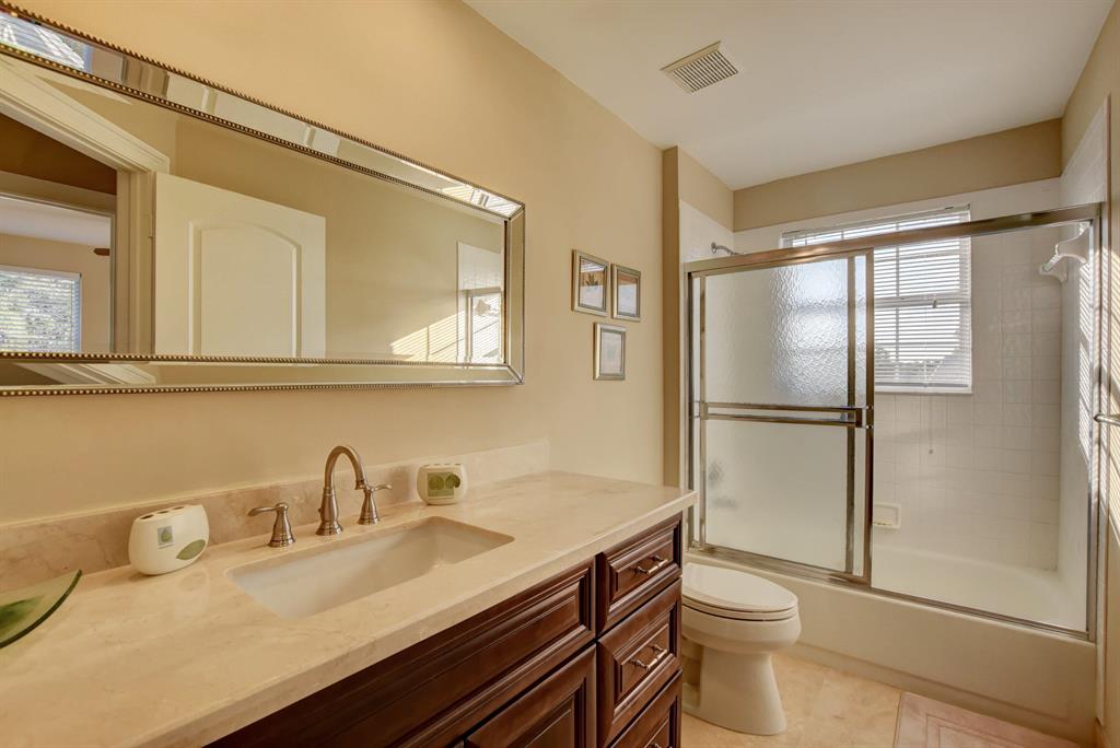 A TRUE GEM! Absolutely beautiful 5 bed, 3 & a half bath, plus office pool home on a huge corner lot in the very sought after Lakes at Boca. The moment you walk in, you will know you found ''the one''. The recent upgrades include marble countertops, 2100 sq ft of travertine marble floors, LG stainless steel appliances, new floors upstairs, a wood burning fireplace and much more. The open floor plan includes a top of the line kitchen with a walk in pantry, eat in kitchen, wet bar, & built in wine cooler. Walk outside to relax at the pool/spa or entertain on your oversized screened in patio with lush new landscaping. Master bed and office downstairs, LED lighting throughout, 2 Carrier ACs, & full accordion shutters. A+ schools, Low HOA, & a great clubhouse.Visit www.LakesatBocaPoolHome.com