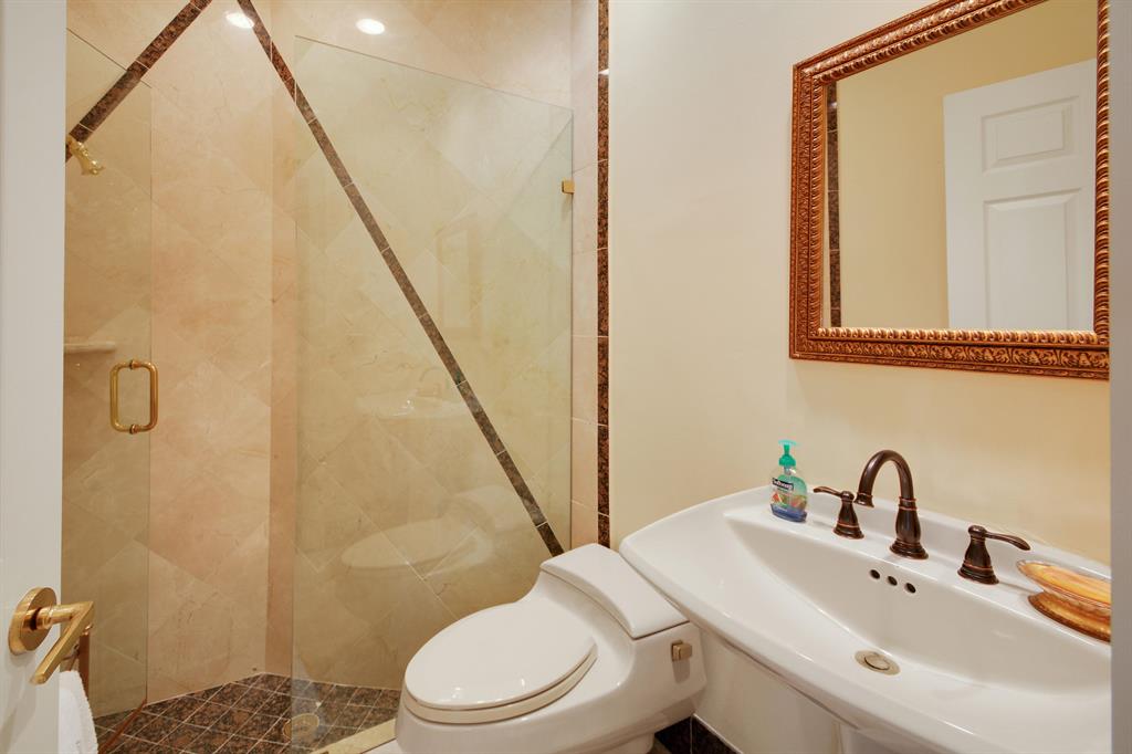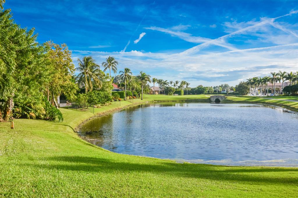 NEW ROOF!! Magnificent 2-story home on an oversized lot with luxurious finishes and architectural details featuring clean lines, volume ceilings, marble floors and French doors. The gourmet kitchen opens to the breakfast area and family room. The main floor master suite features luxurious master bath and 2 large built out walk-in closets. An office/den and ensuite guest bedroom are also located on the main floor. Three additional guest bedrooms are situated on the second floor. The lushly landscaped property features a resort style pool with beautiful lake and golf views. The information herein is deemed reliable and subject to errors, omissions and changes without notice. All measurements are approximate.