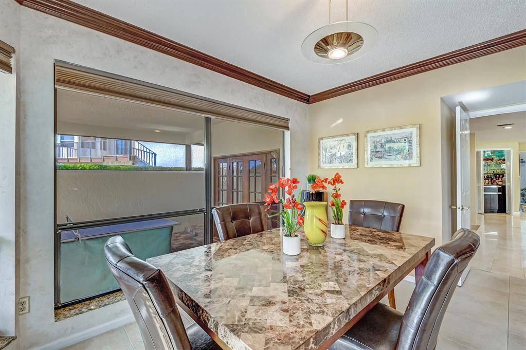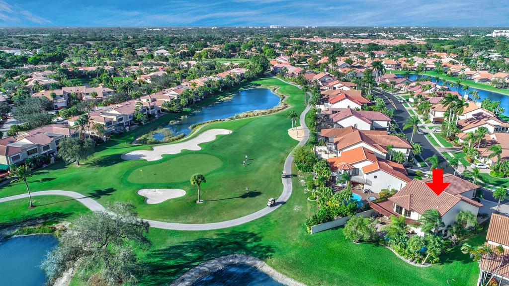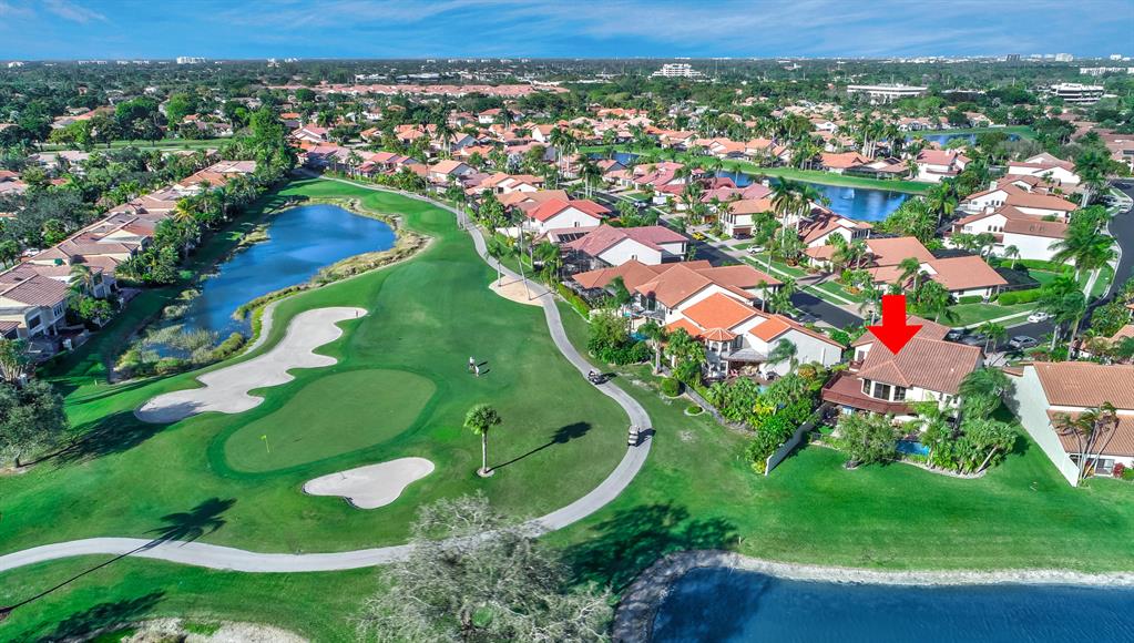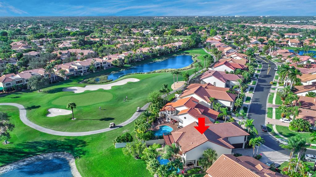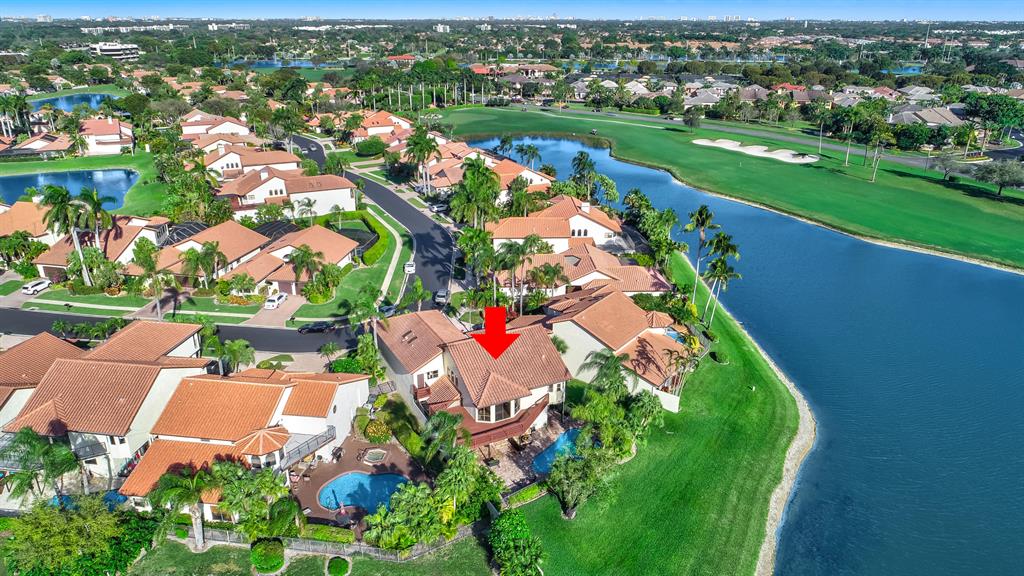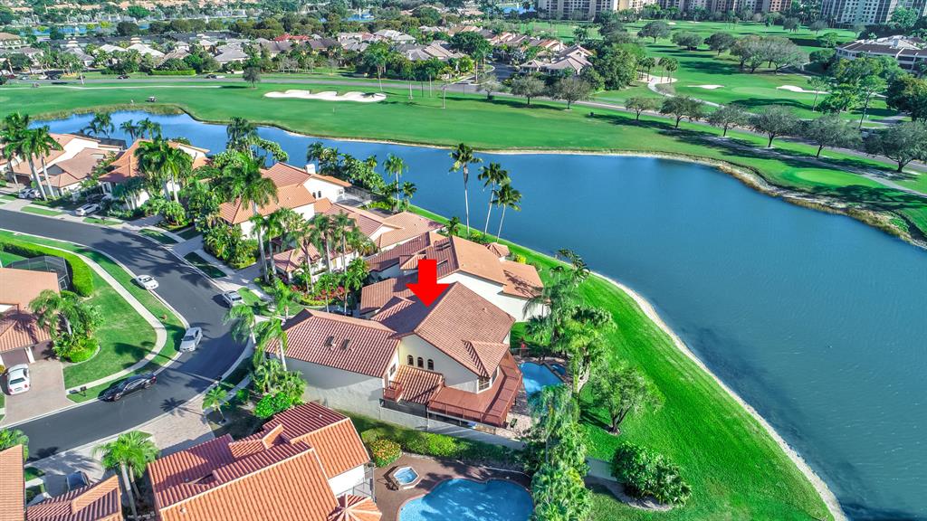 Best Boca Pointe Lot w/Golf and Water Views, & the lot size is about double the size of other Properties!! Exquisite & custom 5 bedroom, 4 full baths, plus den, plus the best back yard in Boca Pointe w/pavered patio w/custom pool, raised spa, Panoramic Waterfront & Golf views located in Esplanada. *Newer S-Tile Roof from 2010* MEMBERSHIP OPTIONAL/NOT mandatory* Dramatic entrance w/soaring ceilings & picturesque windows. Enjoy the sense of openness, volume & space. Saturnia marble flooring. Updated gourmet kitchen features granite counter tops & back splash, & stainless-steel appliances, breakfast bar & large, sunny eat in area w/room for a table, huge windows for tons of natural light & views of the great back yard. Huge & open dining room, living room & family room. Largest Model.