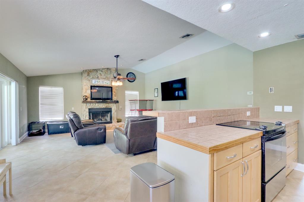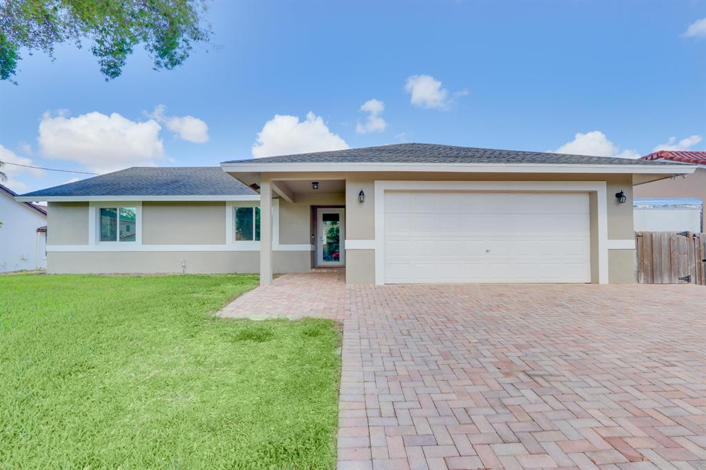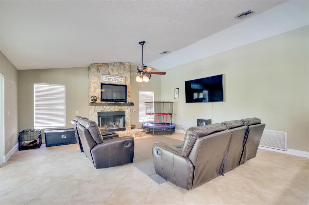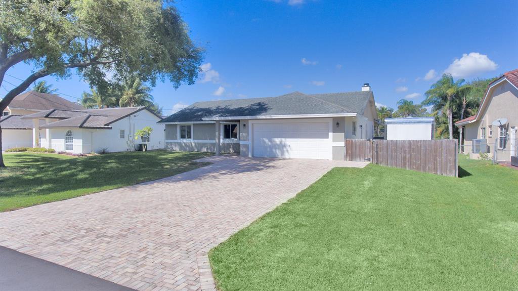 A Fantastic home in Plantation Acres, ready for you to make it your own! This 3 bedroom, 2 bathroom, 2 car garage CBS pool home has some wonderful features. The main living area offers a light and bright open layout, vaulted ceilings, and a wood burning fire place. All bedrooms are generously sized. This home features a beautiful pool that was recently refinished, new travertine pool deck, partial impact windows & doors, and a brick paver driveway. This home is situated on over a quarter acre lot with a fully fenced back yard. There are however a few incomplete projects. Master bath needs to be finished, in 1 guest room new high end flooring was just laid and baseboards needs to be placed, some minor drywall work, paint and other small projects need to be completed. Best of all NO HOA!
