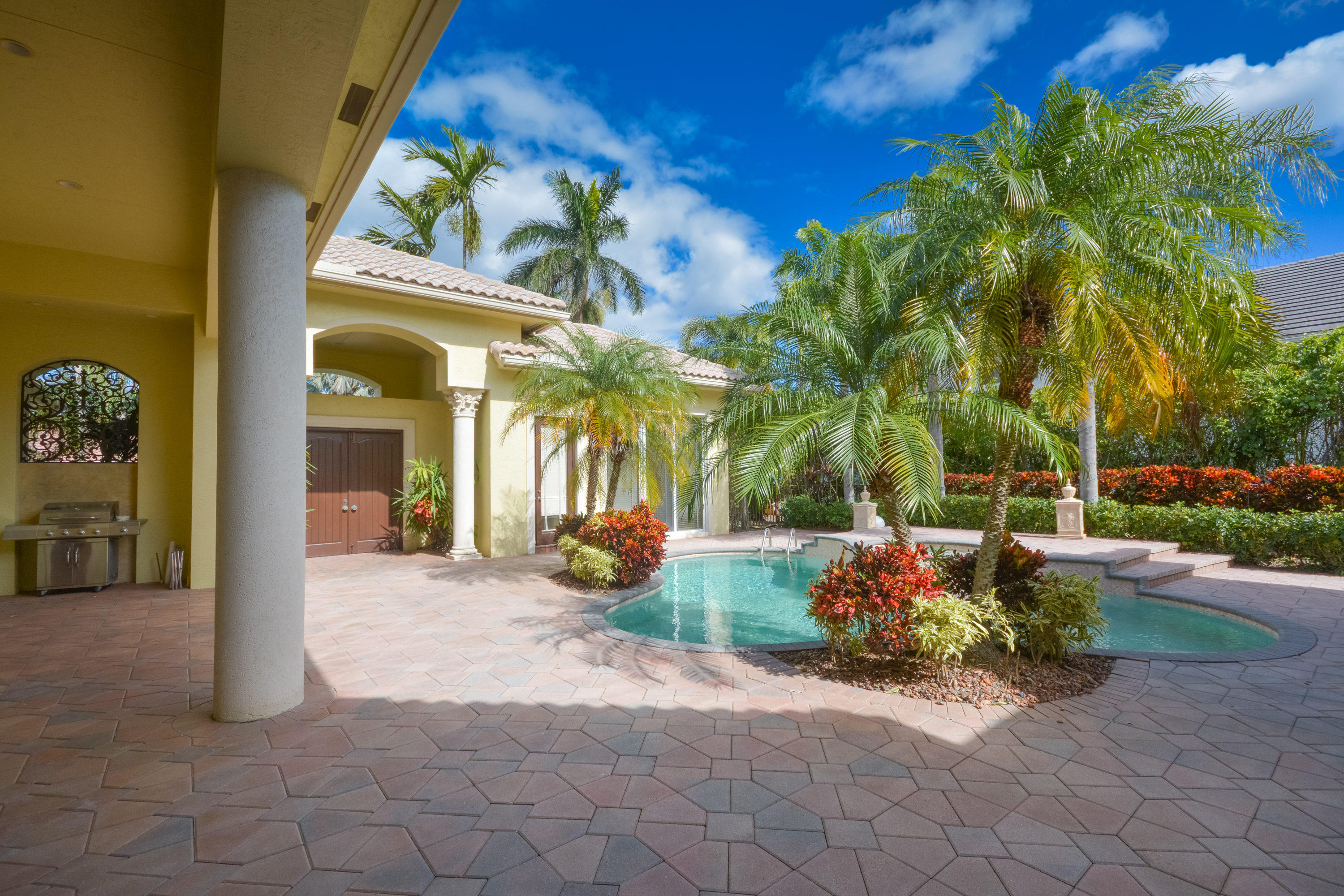 Magnificent courtyard home in Devon Place at Woodfield Country Club. Neutral and bright 4 bedroom, 4.1 bath plus office. 3 car garage with large circular driveway of pavers. White cabinets, stainless steel appliances, and cooks island in the kitchen. Saturnia marble in main living areas and in the detached guesthouse. Wood floors in the bedrooms. Fresh landscaping in the backyard and the courtyard with private pool & spa.