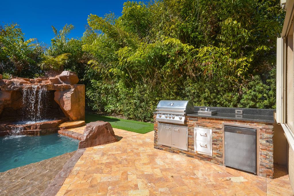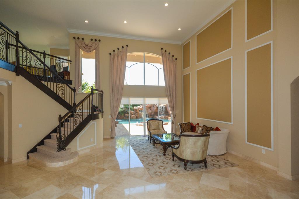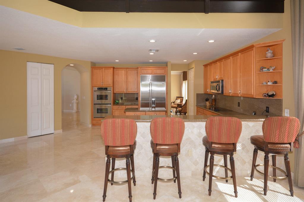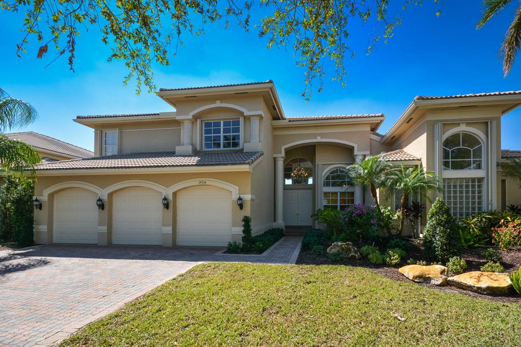 Beautifully appointed Renoir model situated on a private interior lot. This meticulous home features 5 bedrooms, 4.1 baths plus office and large loft. Master suite, office and 1 bedroom are on the first floor. 3 bedrooms, 2 baths and loft are upstairs. Gourmet kitchen with wood cabinets, granite counters & backsplash, and top-of-the-line stainless steel appliances, Sub Zero fridge. Saturnia marble floors. Crown molding and LED lights throughout. Resort style backyard with summer kitchen, outdoor shower, marble pavaers, and spectacular custom heated pool with rock waterfall & slide. More features include 3 zone high efficiency AC units, a 500 gallon propane tank, and Hurricane accordion shutters.