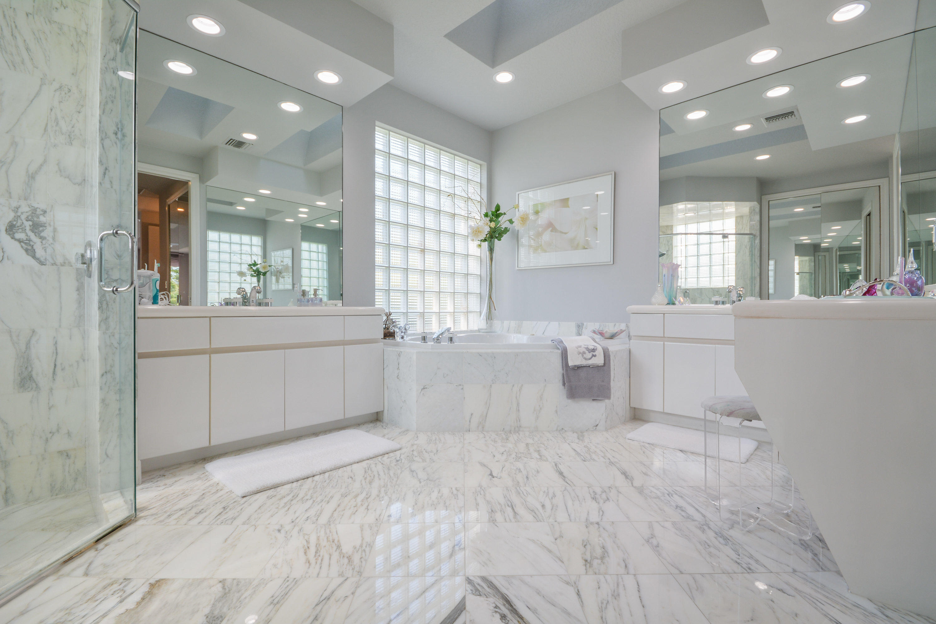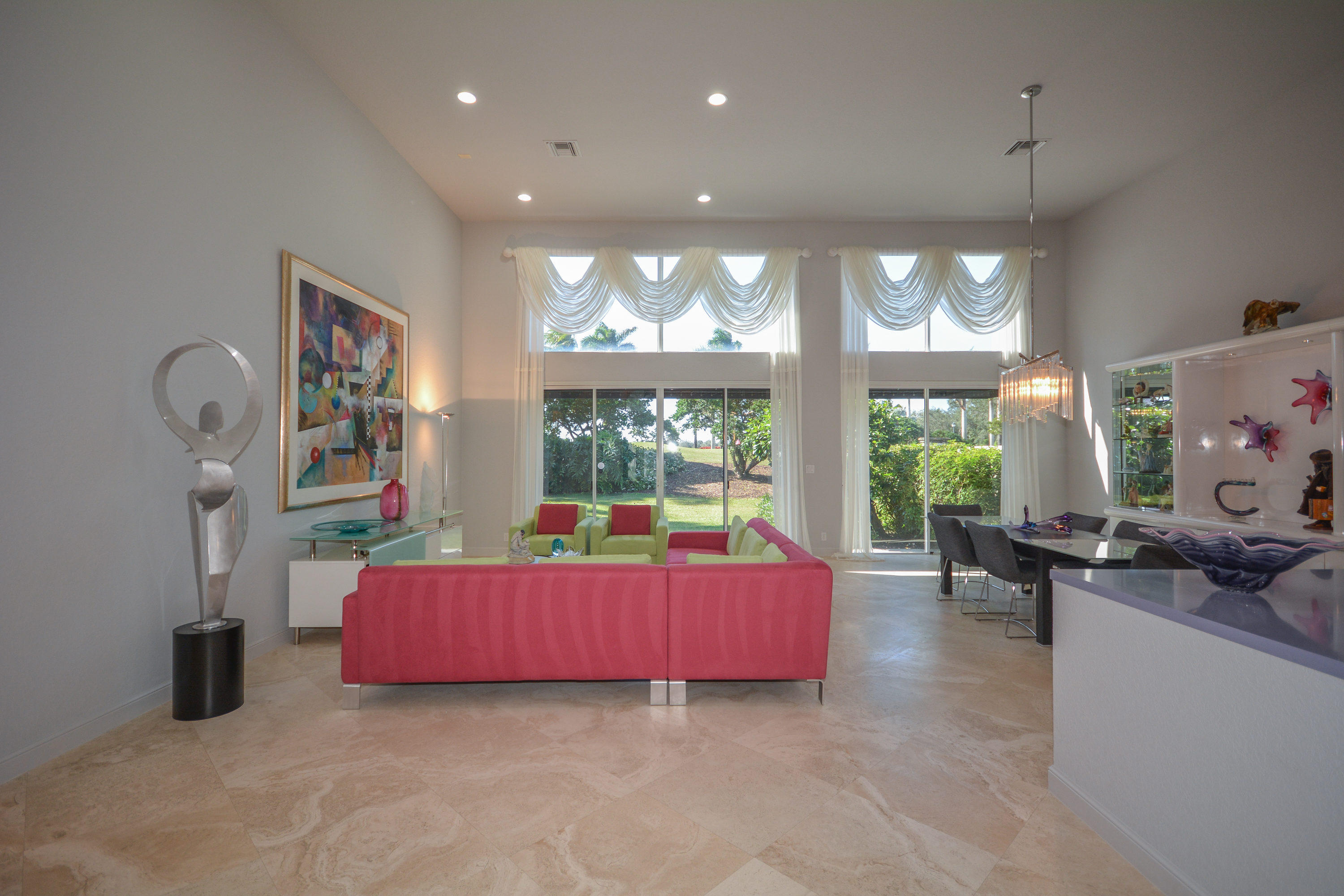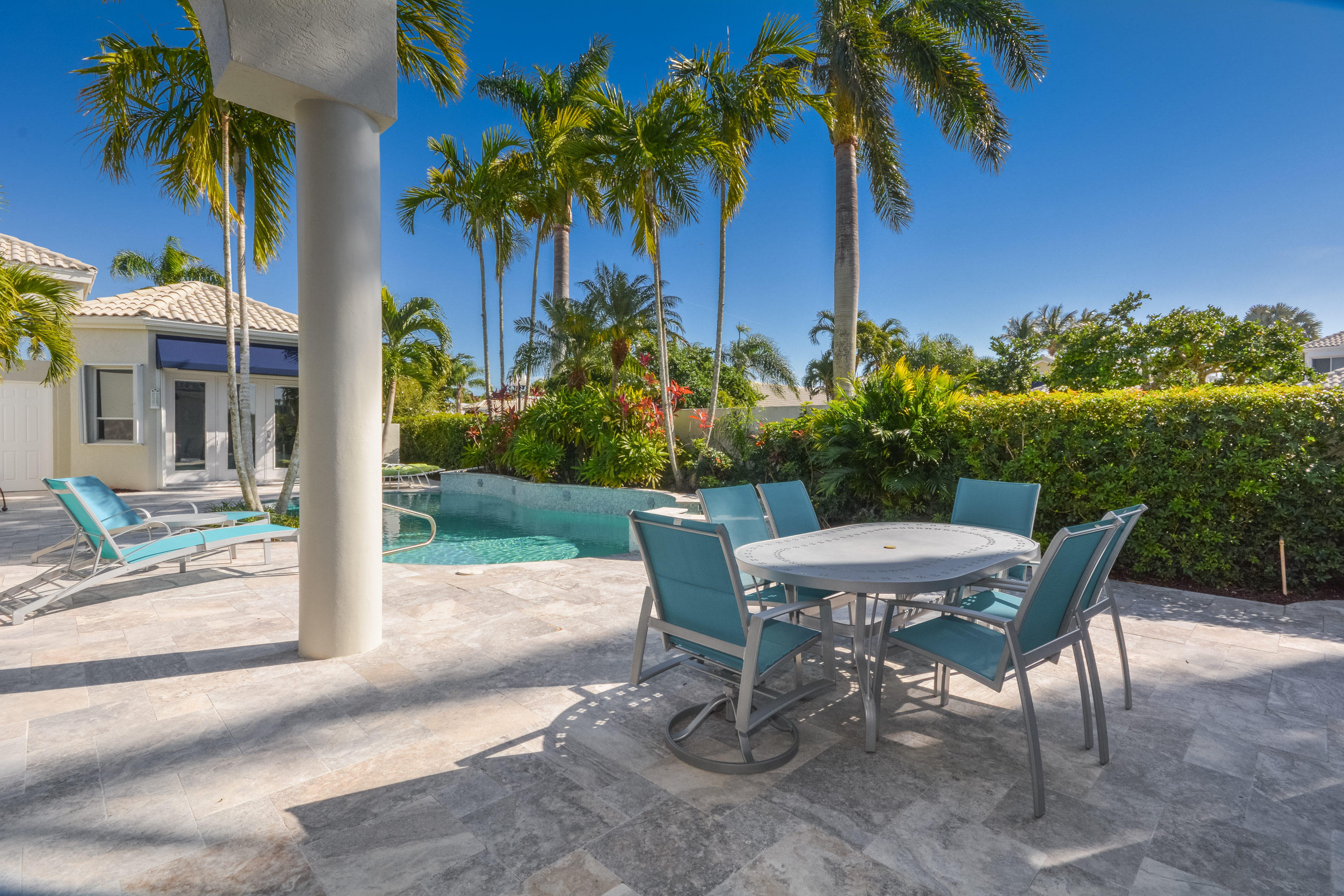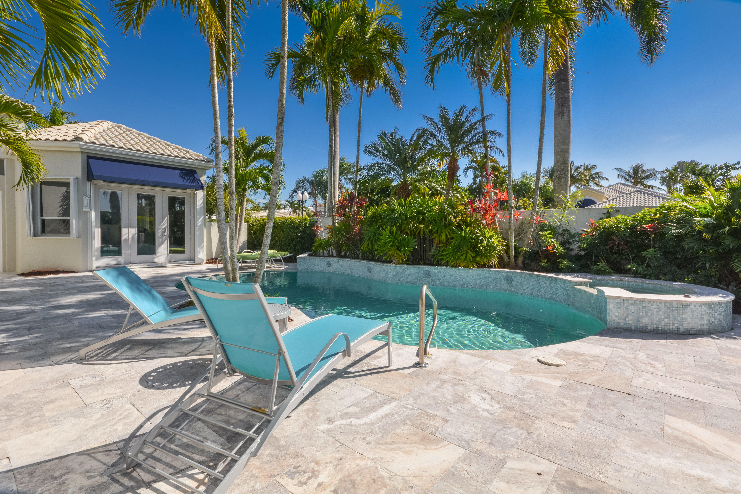 MOTIVATED SELLER!! Move In Ready! Just bring your furniture and tooth brush!! Immaculate and bright 4 bedroom, 4.1 bath contemporary courtyard home situated on a private corner lot with golf course views. This home is a true gem offering a modern Aran Cucine Italian Kitchen with white laquer & lilac glass cabinets, including a huge white laquer Italian coplanari pantry, lavender hue quartz countertops with waterfalls and Porcelanosa tile backsplash. Jenn air top of the line appliances including a double wall oven, induction cooktop, 48'' refrigerator, and Asko dishwasher. This home's living space is completely renovated, with an open floor plan in the great room, kitchen, dining room, and family room. Full house hurricane accordion shutters and a natural gas generator.