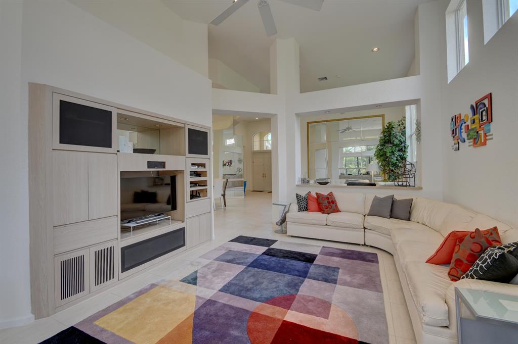Close to 2 entrances of Woodfield & walking distance to shopping, schools &community pool, this light & open 1-story home of 3 bedrooms & 3 baths is located on a quiet private oversized pie-shaped lot offering volume ceilings, neutral beige tile floors & carpeting; a charming kitchen with white high-gloss cabinetry, black granite countertops & lovely breakfast nook; a built-in Family Room entertainment center; mirrored walls and custom closet design. The kitchen & master bedroom are extended from the standard model, and there are also extra high-hat lighting;a water filtration system;newer washer & dryer; newer water heater and air conditioning; perimeter pest control system & garage storage cabinetry. The large private rear patio is inviting with lovely landscape design & room for a pool.
