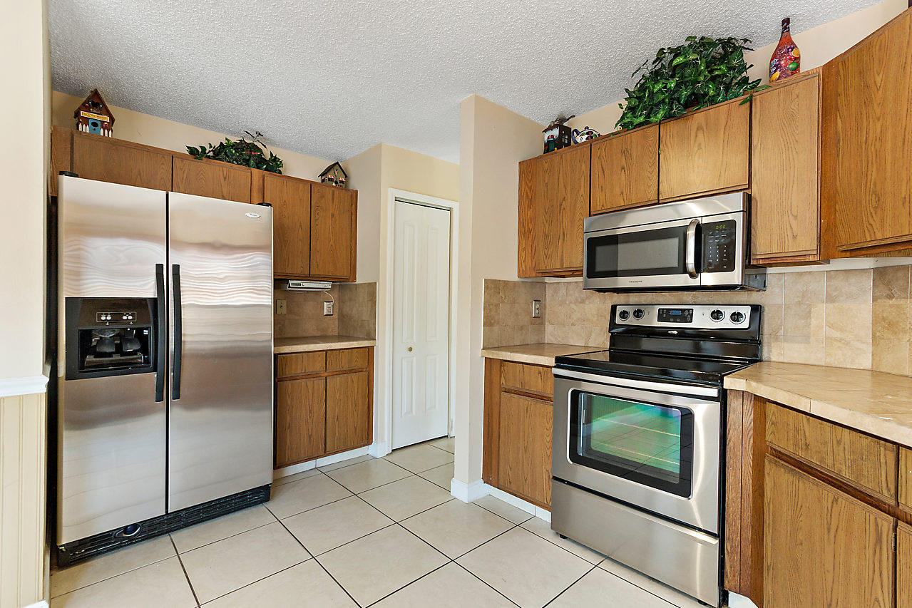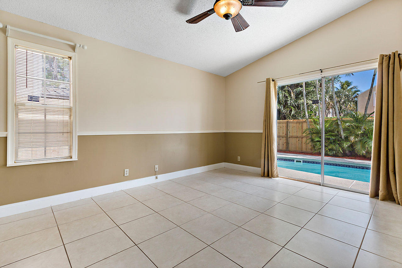 AMAZING! 2 bed 2 bath pool home in gated Victoria Woods. This adorable pool home will not last! The home has great curb appeal and a spacious open floor plan with neutral color paint and oversized neutral color tile throughout. Walk through your front door into your spacious great room with vaulted ceilings and tons of natural light. The family room also has a large slider which leads out to your beautiful yard and pool deck. The kitchen is very spacious with tons of cabinets and counter space, pantry, ss appliances and eat in area. The master features vaulted ceilings, custom mirrors, double closets, a private slider to the pool area and en-suite bath with dual vanities. The guest room is very spacious and the guest bath has a newer white vanity and floor to ceiling tile.