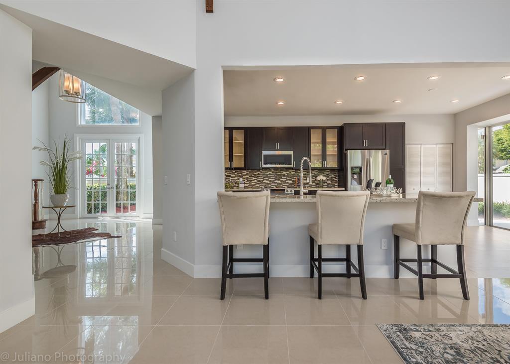 Absolutely gorgeous remodeled SFH at the Palms in Boca Pointe. From the minute you walk in, this 3bdr/3 ba home welcomes you with new flooring throughout, high ceilings to allow that light & bright feeling you desire. Stunning kitchen that opens to all the living spaces with espresso wood cabinets, granite counters & brand new top of the line SS appliances. This model has 2 true master suites, one down & one upstairs, both including large baths with both shower & free standing tubs. All the bathrooms have been updated with the utmost in taste! New washer & dryer, NEW ROOF being installed, NEW exterior paint. 2 car garage, laundry inside, walk-in closets, extra loft space for a small office. The Palms has a 24 hr manned gate & lovely community pool. Club Membership is OPTIONAL!