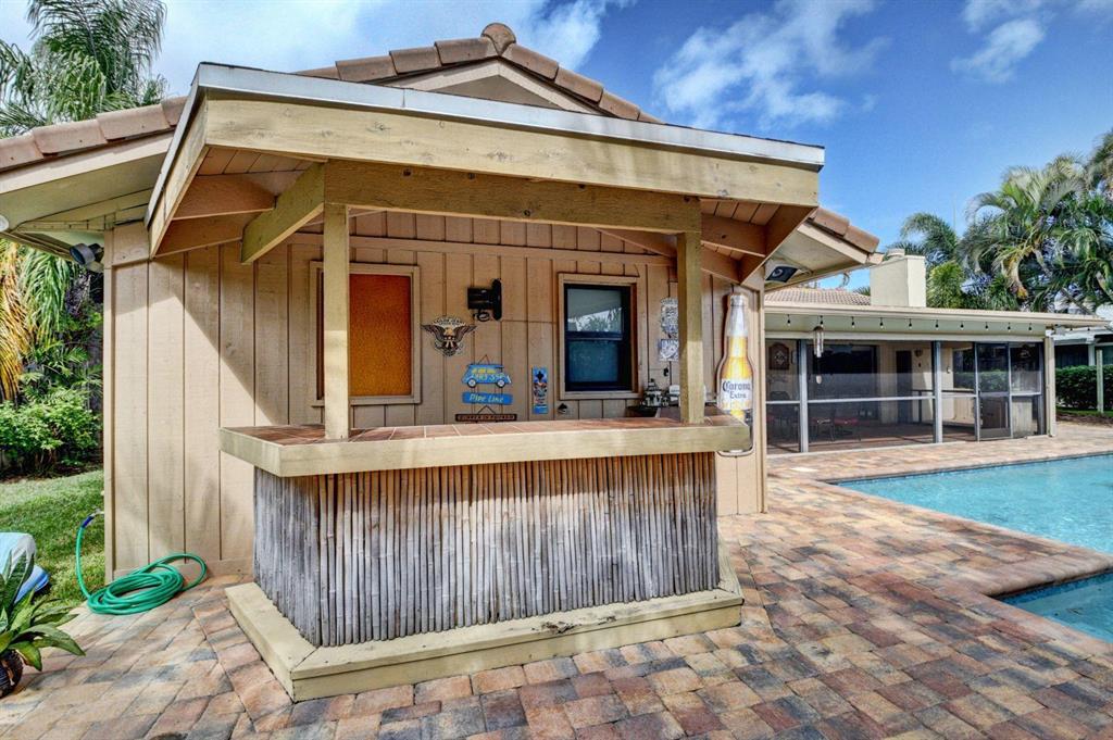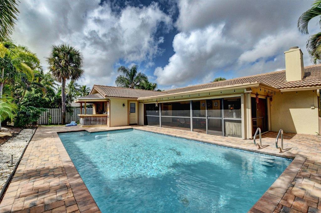 Completely updated, one story home in East Boca Raton! This beautiful home has LG kitchen appliances in 2014, granite counters, and an added patio off the kitchen, perfect for grilling! Open living area with a wood burning fireplace! Large bedrooms, with great storage. Master has a slider to the pool, and a walk in closet with fitted shelving. Impact glass windows throughout, except for back sliders, which have accordian shutters. Screened patio, great for dining, a large pool and yard that includes a tiki hut! This home is great for entertaining! Chicago brick, new landscaping, new pool pump in 2018, and pool was resurfaced in 2012.No HOA, great schools, and close to beaches and 95!