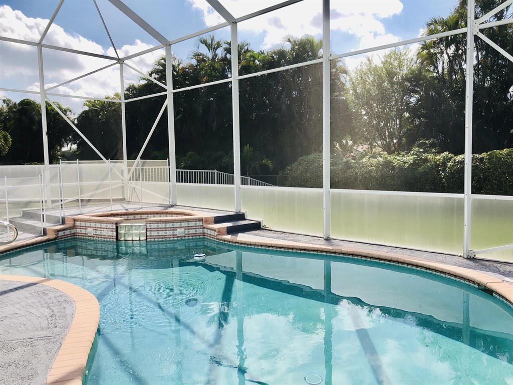 This beautiful home, located in Boca's Mission Bay, is wonderfully maintained and ready for a family to move in! Spread over 2,900 square feet, there are 4 bedrooms, and 3.5 bathrooms on an oversized floor plan. The courtyard entry splits the main home from the separate guest suite which has its own full bathroom. Tile flooring is immaculate, and plenty of natural light are found in nearly every room. Upgraded appliances complete the kitchen area. The upstairs master suite is oversized, and includes its own sitting area with a windows overlooking the pool below, and a bathroom with expansive his and her closets. The outdoor lanai is screened, and includes a large pool, and a golf course beyond the tropical landscaping. A-rated schools are minutes away! This is the perfect family home!