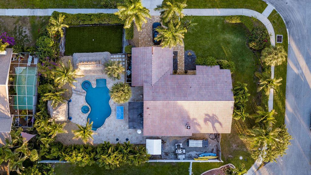 Expansive double corner lot in east Boca with resort like back yard. Two Tiki Huts and a turf sports area surround the custom pool with elevated spa and large deck area. Updated home features complete impact glass, newer concrete tile roof, open floor plan and updated kitchen with stainless appliances. Large master and en suite master bath, vaulted ceilings, plantation shutters and a modern beach vibe. Lush landscaping, location, location, location. Walk to Boca High / Boca Middle.