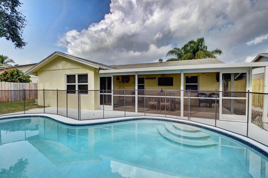 Fabulously updated & meticulously maintained home w/3 Bedrooms/2 bath/1 car garage in Saddlebrook. Great curb appeal on the outside and just as amazing inside! Open & bright w/impact glass windows & tile flooring throughout. Updated open kitchen to large dining area.Great house for entertaining. Large covered patio & fully fenced in big yard and SALT WATER pool. Very low HOA. Pet friendly community! No rental restrictions.