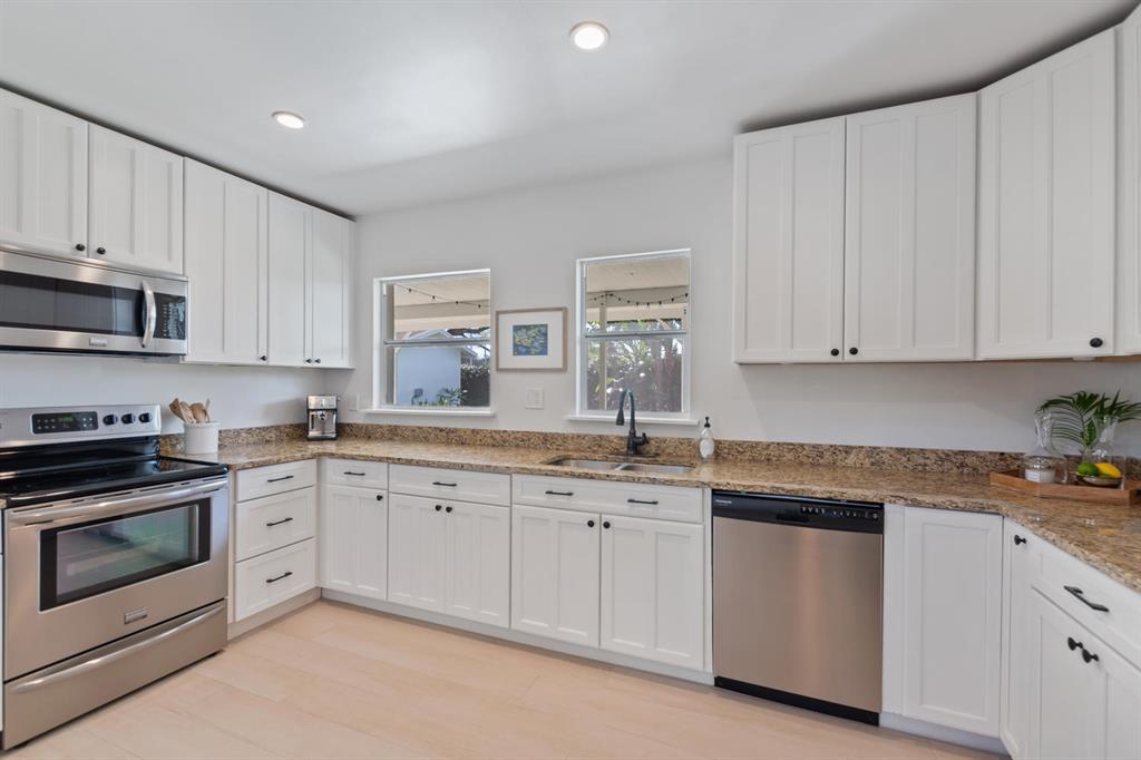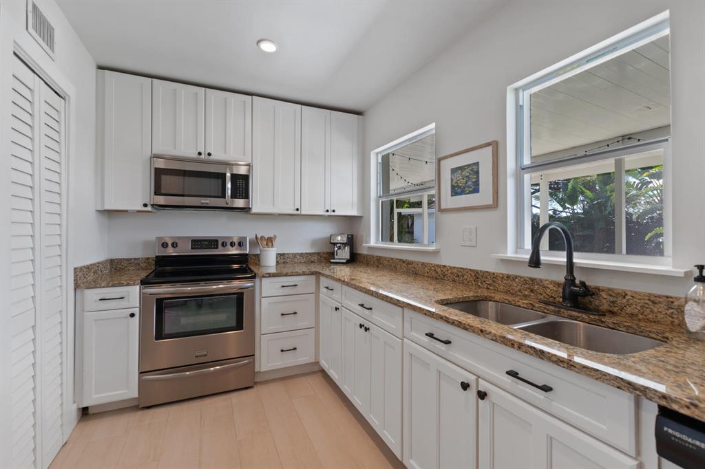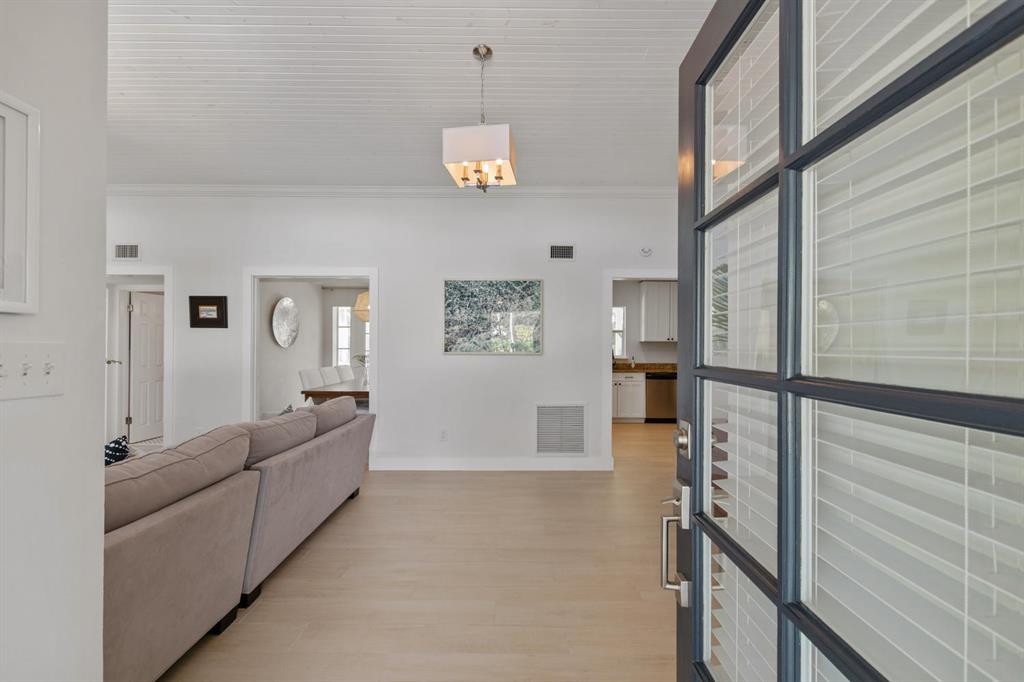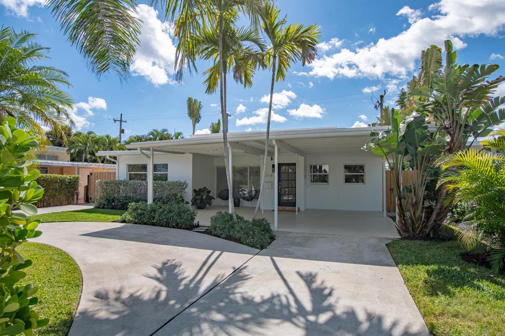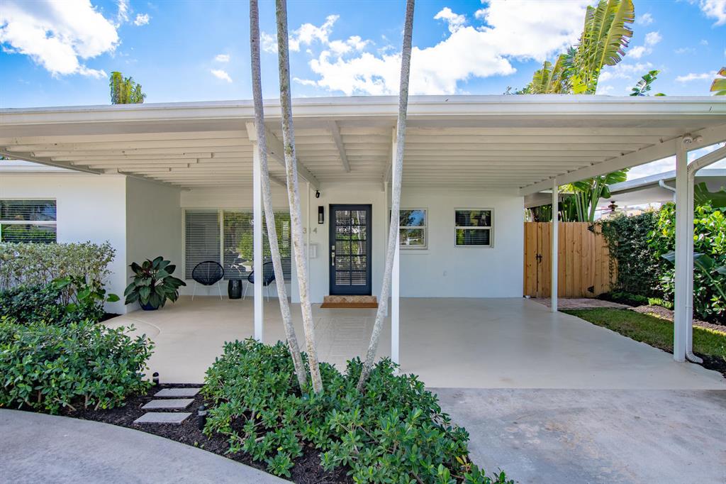 This beautifully updated 3 bed/2 bath mid-century home is located in desirable So-So neighborhood, two blocks from the intracoastal and in the S. Olive Elementary School district. Oversized windows and the vaulted ceiling provide abundant natural light throughout. Kitchen features granite countertops, stainless steel appliances and custom painted wood cabinets. The master bedroom boasts an ensuite bath and ample storage including custom walk-in closet. Other features include wide plank tile floors, 2018 tankless gas water heater, 2016 AC, new Miami-Dade approved hurricane panels and boat pad. New irrigation system and landscape lighting compliment the lush, tropical landscaping and custom exterior gates offer added privacy.