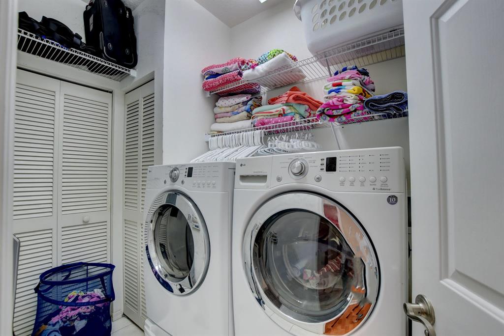 Totally renovated upper level corner coach home! Three bedrooms with a split floorplan and 2 bathrooms. The kitchen has stainless steel appliances, granite countertops and a tiled backsplash. Sliders from the kitchen and living room open onto a peaceful and private patio overlooking one of Villa San Remo's many lakes and fountains. The master bathroom has double sinks, and many of drawers in the vanities. The second bedroom has ''California Closet'' type shelving installed. There is a large interior laundry room. Other features are rolldown shutters on the patio and no popcorn on the ceilings. Condo association takes care of all outside the home. Transferable maitenence contract included. Conveniently located to the pool, clubhouse and gym. 24 hour manned gate , Great Boca Schools