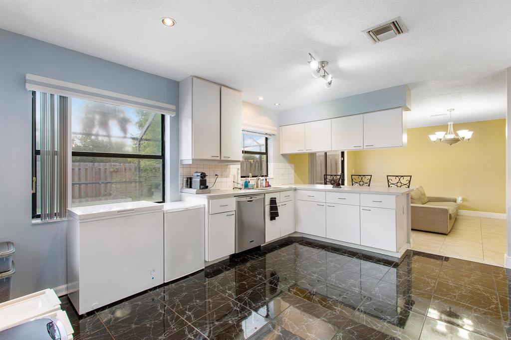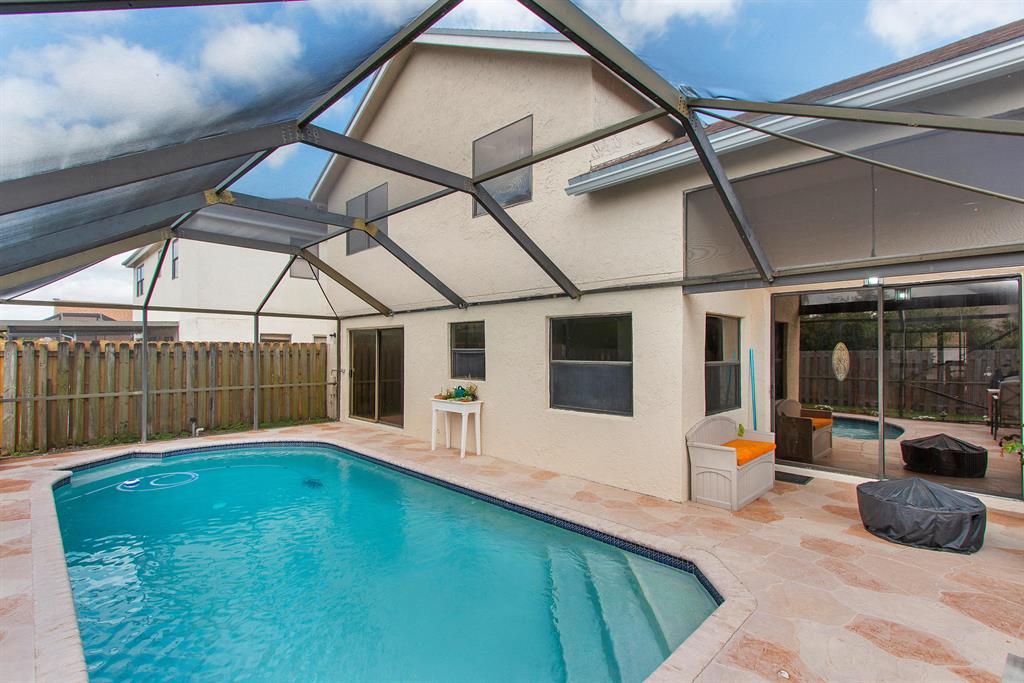 Rarely available 3 bed / 2.5 bath pool home in the centrally located community of Trends within top 'A' Rated Boca Raton school district! This gorgeous open floor plan home showcases sweeping volume ceilings providing a bright and airy feel boasting over 1,800 sq ft of living area, updated kitchen, spacious bedrooms, recessed lighting, newly painted interior featuring modern fresh neutral colors and premium knockdown ceilings. Exterior improvements include newer paint, screened-in pool and custom deck, well manicured fenced in backyard ideal for your family pets, privacy and entertaining outdoors year round!