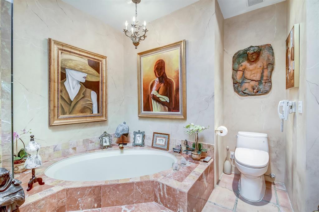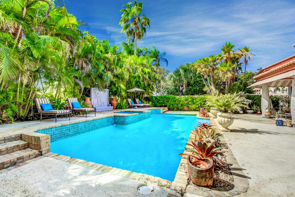 Updated Mediterranean one story single family home in prestigious Villa Flora section of Boca Pointe. This home is unlike and much better than others you have seen before! ''It's all about the enormous heated pool & huge lot!!'' Amazing indoor and over the top outdoor space! Larger than the other lots, this home features a pool that's about double the size of the average pool. Waterfalling from the raised spa, with Chicago Brick pavers around. New roof from 2016 and 500 Gallon gas/propane tank that keeps the generator going for over a week during a hurricane. This very desirable ''Extended Capri'' model w/3 bedrooms features soaring ceilings, spacious open floor plan, fabulous foyer entrance w/sky light, to the clay tile flooring throughout except bedrooms with newer berber carpet