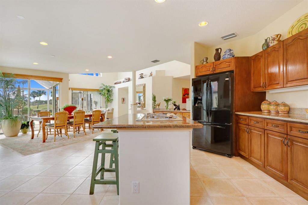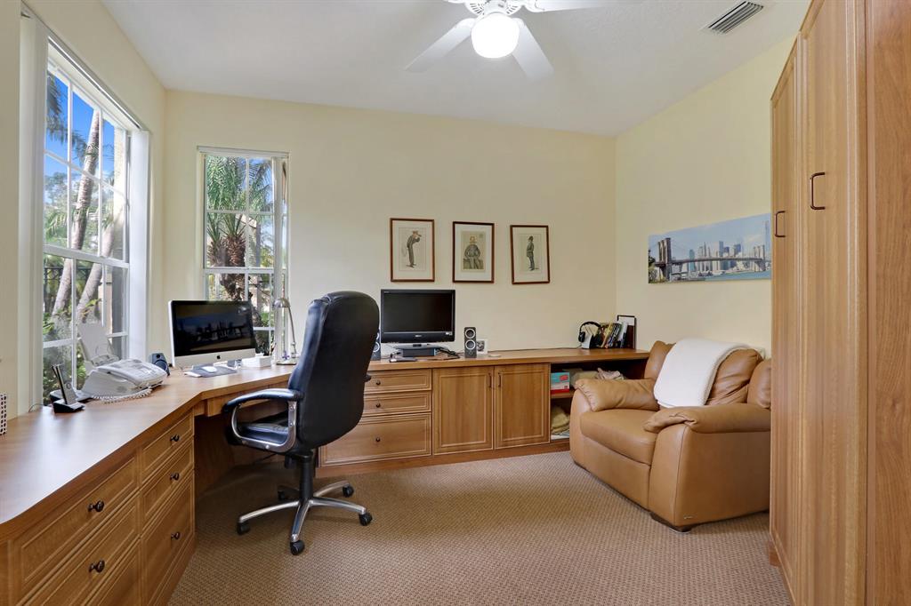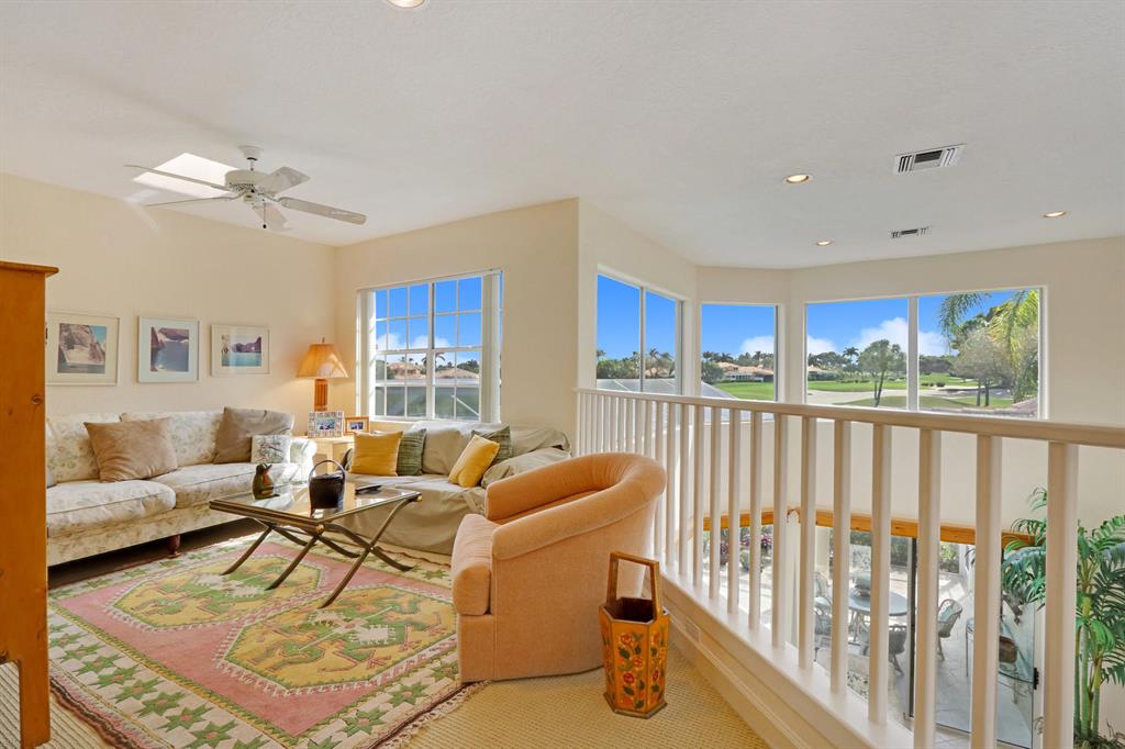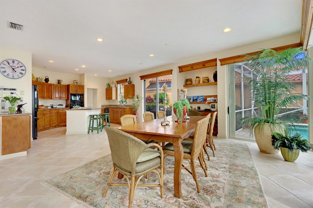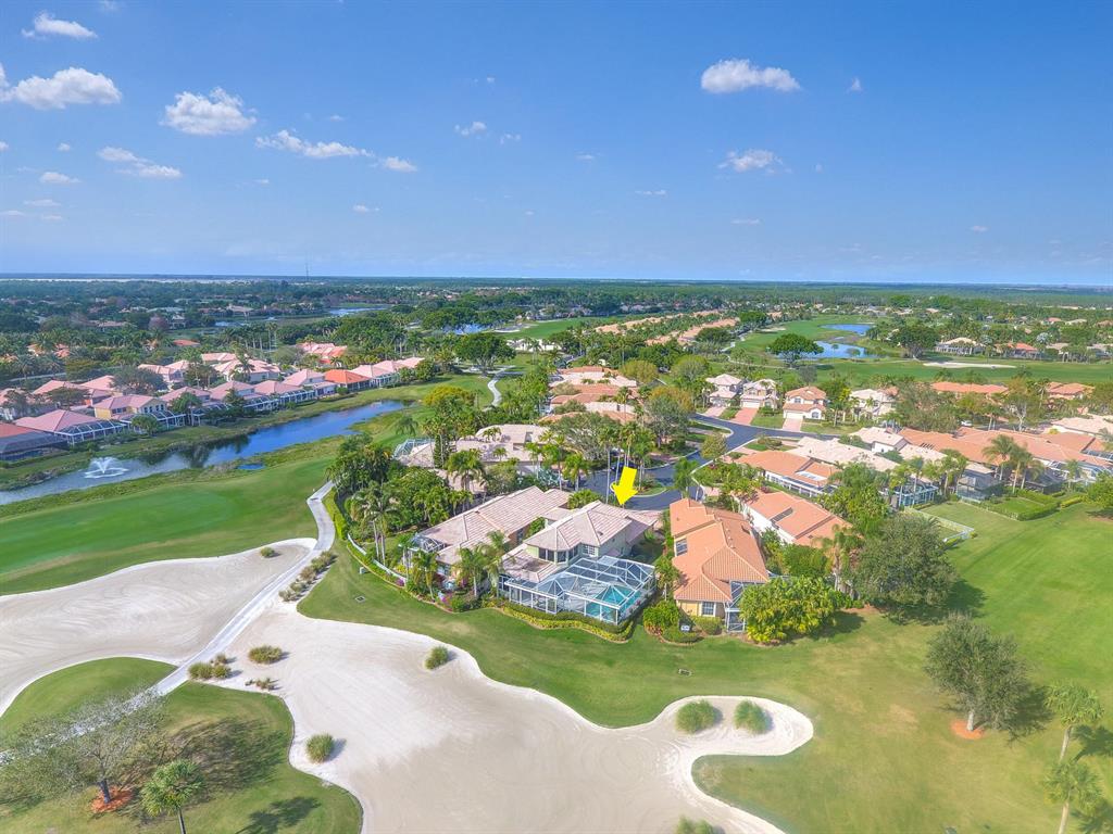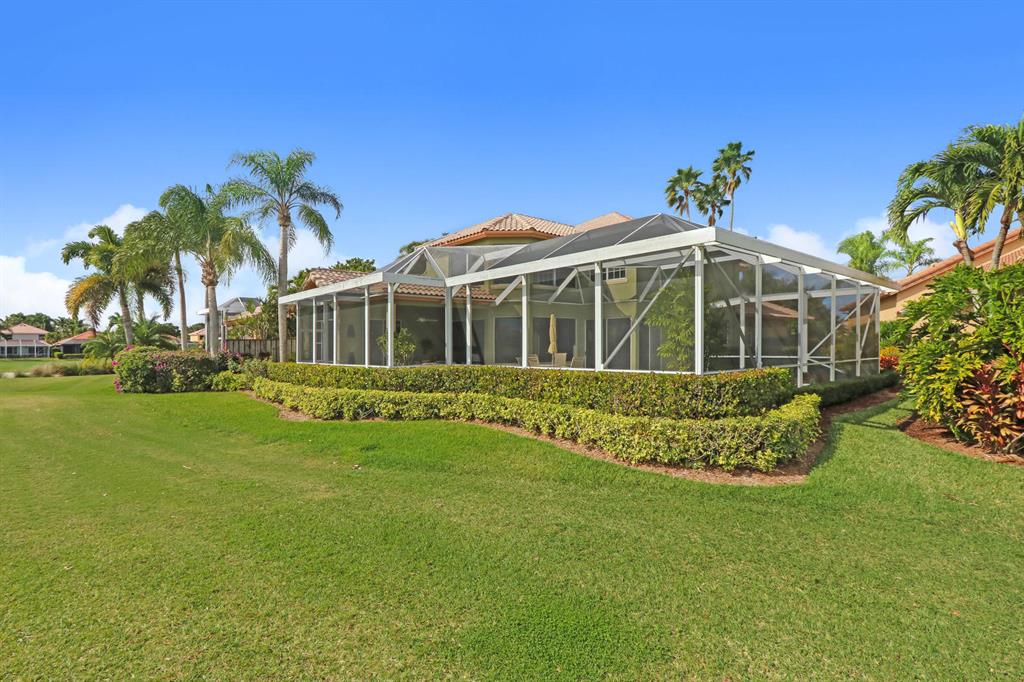 Incredible south-facing golf course views from this magnificent 3BR/4BA+Den+Loft. Located in a cul-de-sac and overlooking the first and ninth holes of the Heritage Course, this home is filled with incredible light. An over-sized cul-de-sac lot provides a feeling of spaciousness as well as a lushly landscaped side yard (perfect for the gardener or pet owner.) The large fully screened enclosure houses a large pool and spa with plenty of covered area for entertaining. The owners have made the floor plan even more open by removing walls. The flooring has been replaced with an upgraded and elegant tile. Other upgrades include: custom office built-in, granite counters, pull-outs, master closet built-in, hurricane protective film on all the windows, replaced glass front doors, elegant wood...