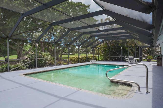Great pool home in the all-age championship golf course community of Boca Woods. Light and bright, high ceilings, open floorplan. 3 bedrooms and 2 1/2 baths on 0.31 acres. There is a beautiful view of the 15th fairway of the Woods course from the pool and patio. House is conveniently located close to the Boca Woods Clubhouse. Pictures were taken prior to limited water damage and are being included for illustrative purposes only. Damaged drywall and other components were removed immediately and remediation has been completed. New buyer can purchase prior to the drywall being repaired and bathroom completed at a discounted price.Membership required. $30,000 Equity which is refundable when the home is sold and $35,000 non-refundable initiation fee.