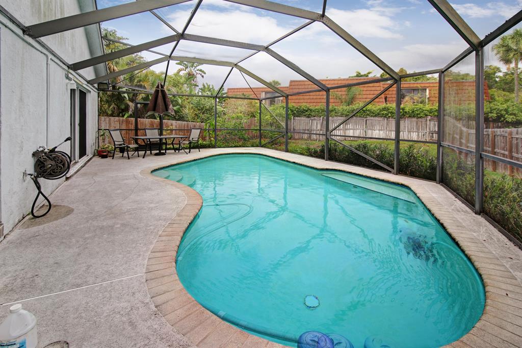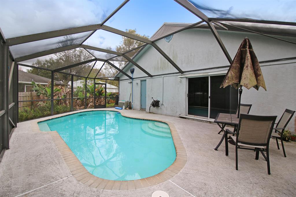 Pool home in heart of Davie. This home is nestled on a cul-de-sac lot with fruit trees, a fenced yard, and screened, heated pool.The stacked floor plan offers space for both a formal dining room and dine-in kitchen. The living room has vaulted, smooth ceilings and tile throughout. No carpet in this home! Floors are easy to maintain with the central vacuum system.There is a single car garage converted for utility. Water heater is from 2018. The AC unit is from 2009. Roof is from 1995.The owner worked with the builder to create their ideal space- now it can be yours!