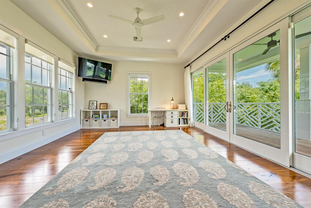 Nestled by exotic flowering foliage this newly built waterfront estate is discovered just steps away from historic Old Floresta. Featuring over 5,400 total square feet this spacious floor plan combines elegance and modern convenience with 5 bedrooms, home theatre, 4.5 baths, cabana bath, butler's pantry, and dock with ocean access. Bevolo gas lanterns illuminate the grand entry of this architectural masterpiece with a sprawling backyard amidst lemon eucalyptus, leyland cypress trees, bamboo, and maple. Hardwood wide plank walnut flooring, impact glass, custom millwork, and dual gas and wood burning fireplaces create a warmth and airiness throughout the entire home. The Downsview gourmet kitchen with center cook island, Wolf 8 burner stove,