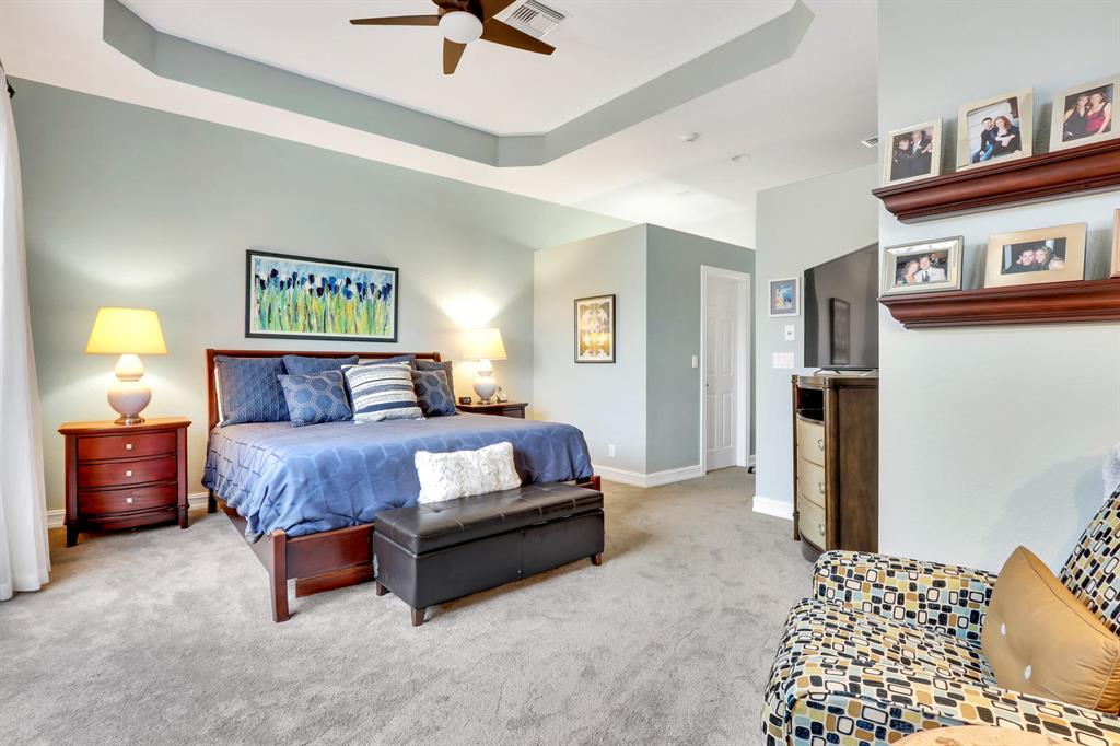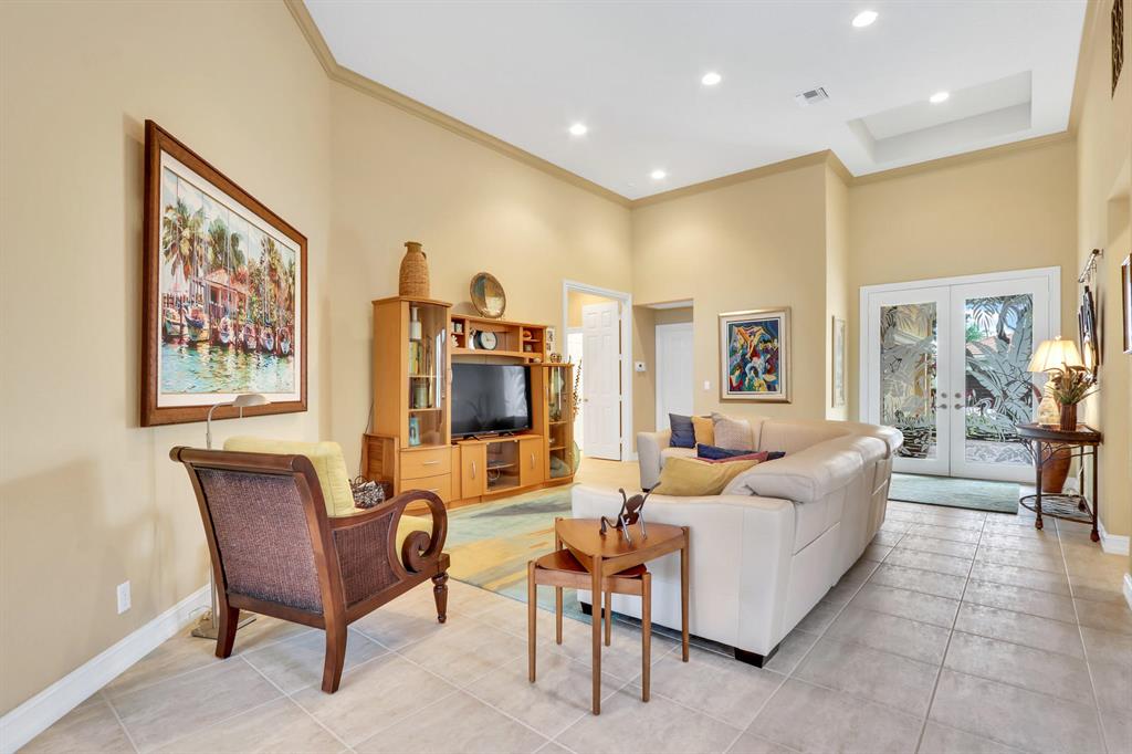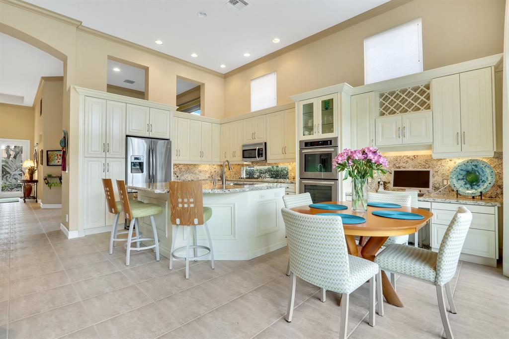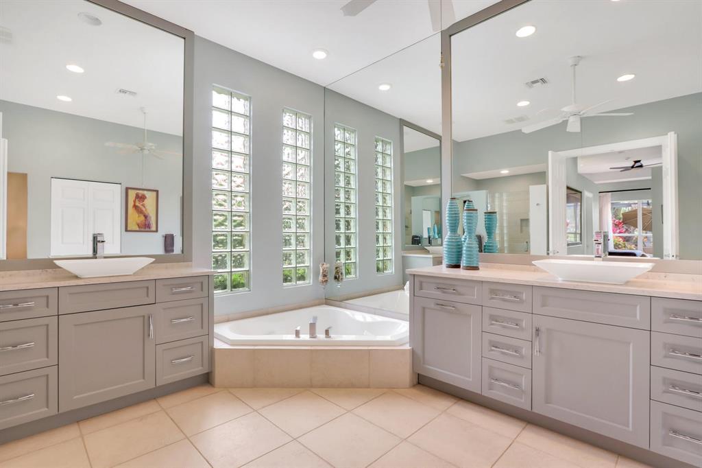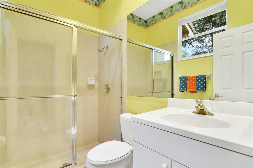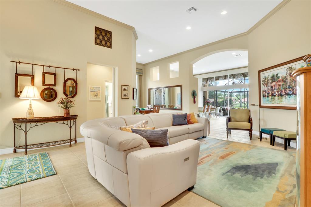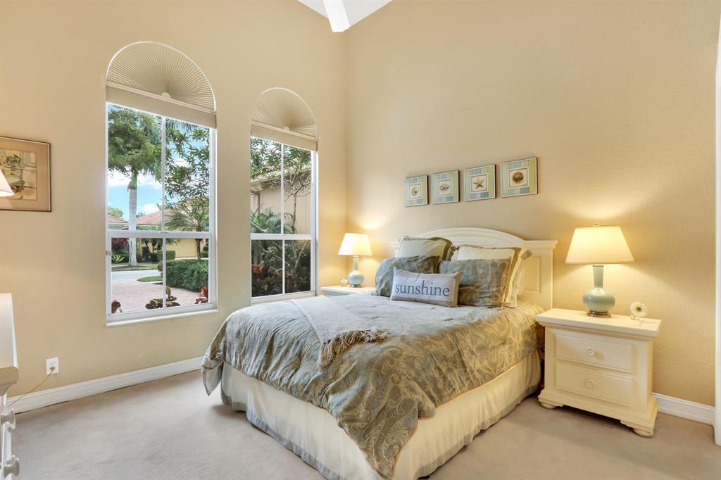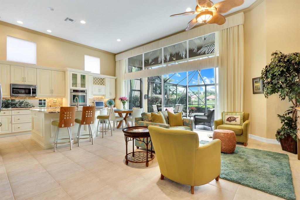 Walk to the club, pool and fitness center from this sought after Ibis neighborhood. 2BR/3BADen home with a convertible bedroom that overlooks the 17 th green of Tradition with water and golf views. With a sought after SW exposure in back, this home has a fully screened back yard with a lovely pool including a new pool pump. The kitchen has been totally redone in white wood cabinets , with double ovens, gas stove, freezer on bottom of fridge, a large counter with stools, and a spacious desk area. Done in soft grey neutrals, the master has new carpet and a redone bath. Closet built ins and an oversized master with a sitting area that overlooks the pool and patio area. Ac is 4 yrs old Golf cart garage with extra storage inside garage. Crown molding + many extras!