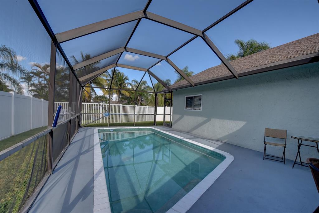 Beautiful Renovated 4 bedroom, 2 bathrooms home. This is a Lakefront Pool home in the desirable community of Boca Winds. Split floor plan. Remodeled kitchen with granite Counter tops, and SS Appliances. Unbelievably beautiful highly upgraded master bathroom. Tile floors through out. Bedroom with wood tile. Impact windows throughout. White vinyl fenced backyard. Screened Pool gives you the privacy to enjoy the perfect Florida weather. Security Cameras throughout. Roof 2001, AC 2011. Exterior termite protection seven year warranty. Low HOA fees. 3 ''A'' rated schools. Minutes from south county park with outdoor amphitheater, dog park, nature center, water theme park and jet ski launch . Easy to show.