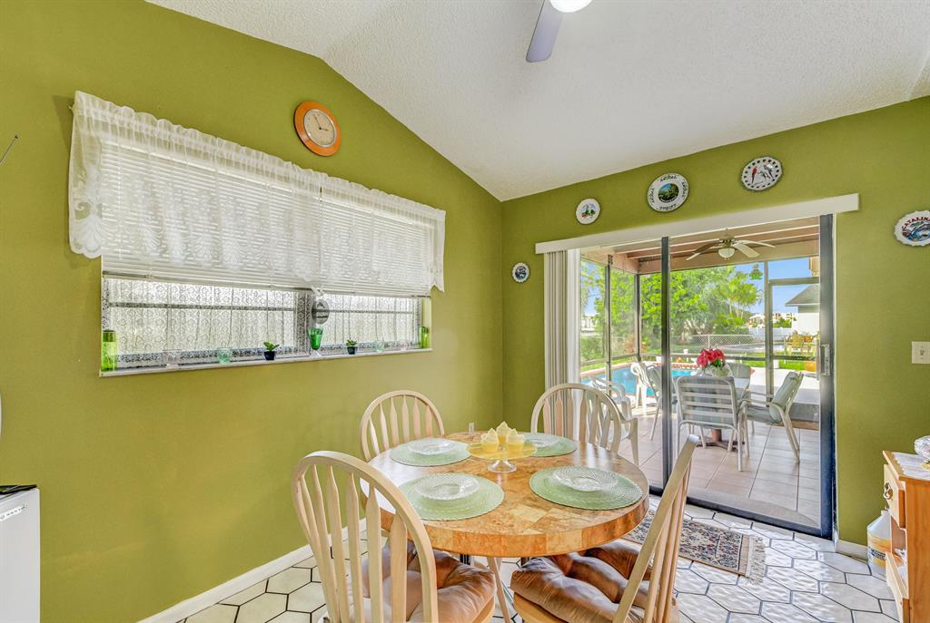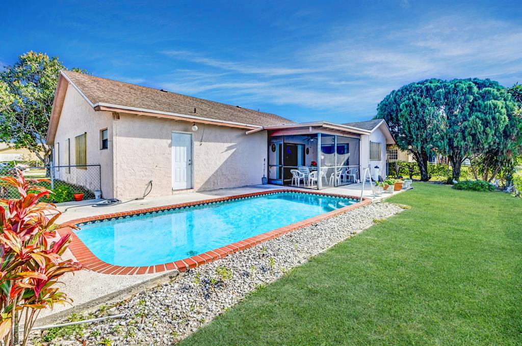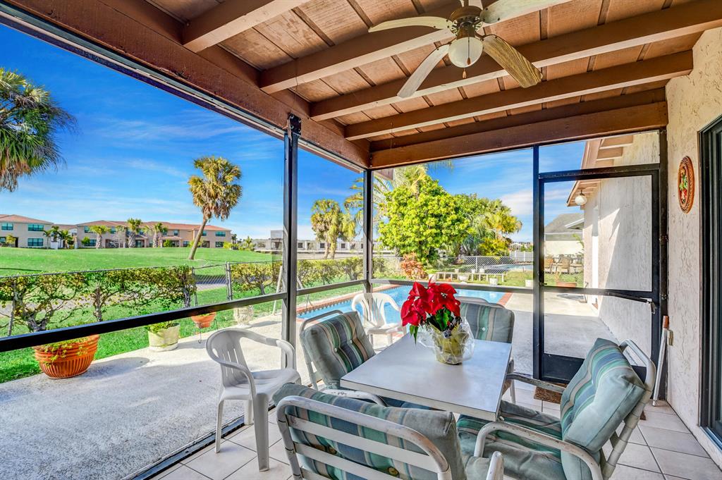 Newer Sandalfoot Home backing up to Boca Dunes Golf course. Spacious, open and bright with vaulted ceilings, tile throughout living area & laminate wood flooring in the 3 bedrooms. Fabulous foyer, Huge living room and dining room. Large kitchen with a sunny eat in area. Master bedroom features an enormous walk in closet and en-suite with an updated large shower. This home is meticulously clean and in great shape. Amazing Golf course views! Sparking pool, screened in and covered patio. Great place for entertaining and relaxing. Clear Hurricane panels for most windows(a few aluminum too) Two car garage. No HOA. Zero HOA fees! No restrictions! Amazing schools! Pets ok! All ages are ok! Most furniture is negotiable.