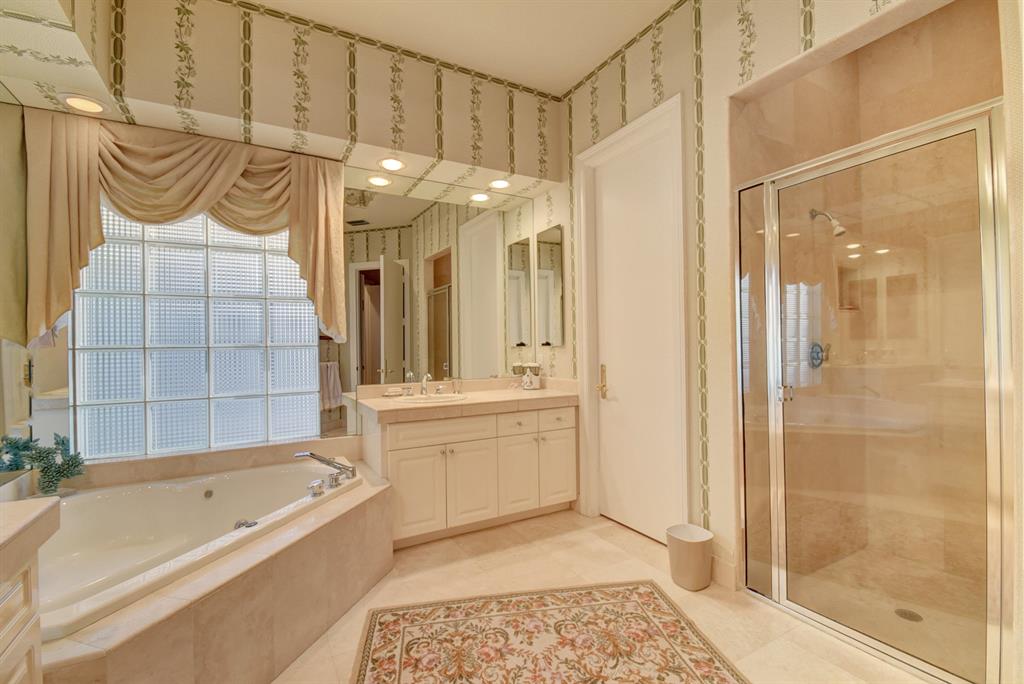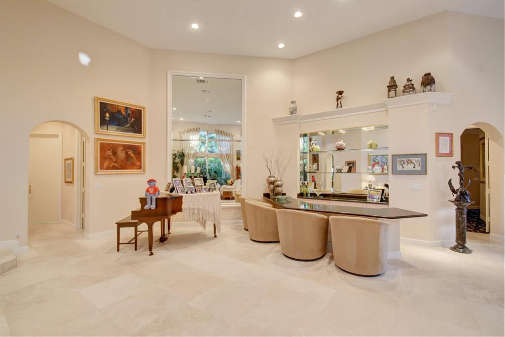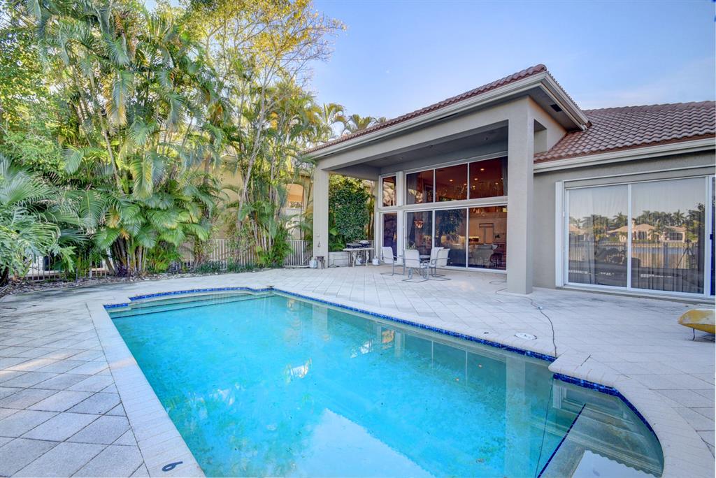 A very special home - one-story with a pool on the lake! Enjoy spectacular lake views the moment you enter this immaculate one-story 3 bedroom/3 bath home featuring volume ceilings; Saturnia marble floors, a Living Room wet bar; an open island kitchen with white 42'' cabinetry & corian counters; spacious Master Suite offering custom configured walk-in closets & marble Master bath with 2 commodes; built-in desk & shelves in the third bedroom; sold core doors & central vacuum system. The patio area offers covered & open areas and a pool overlooking the lake. There are accordion hurricane shutters along the back. The roof is about 8 years old & has a special neoprene sheet under the tiles for additional protection. The A/C systems are about 8 years old; washer & dryer about 3 years old.