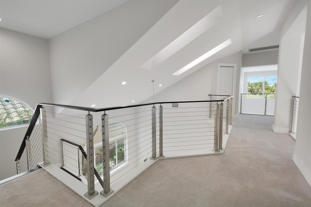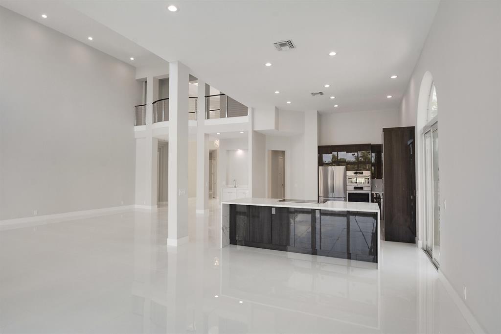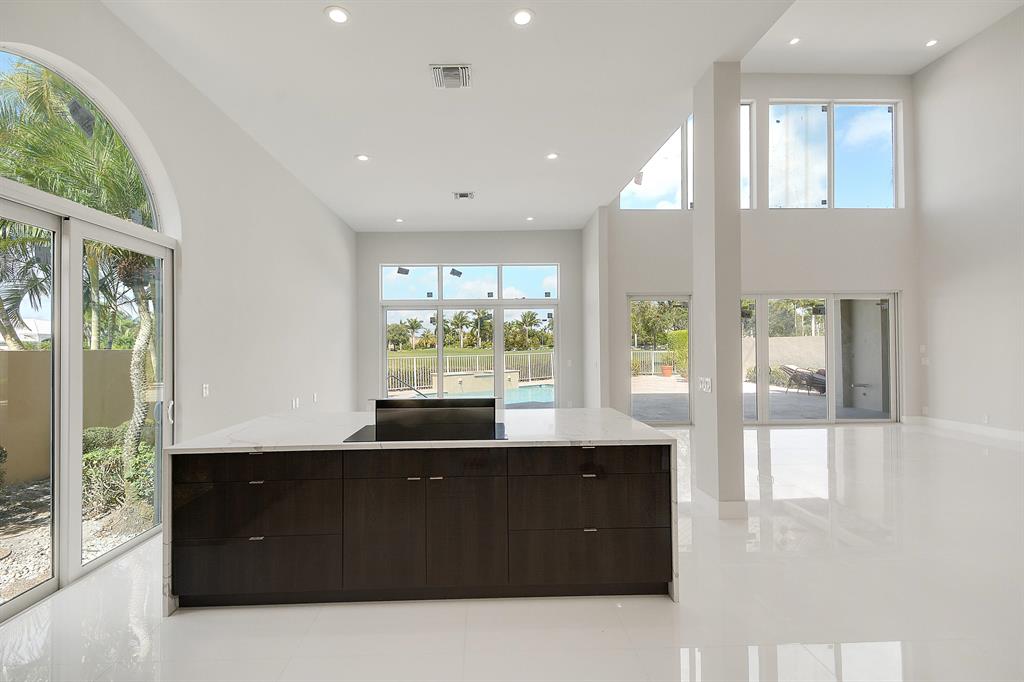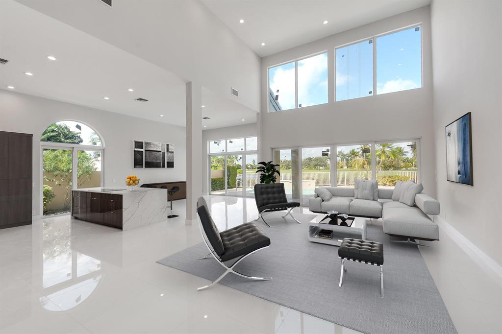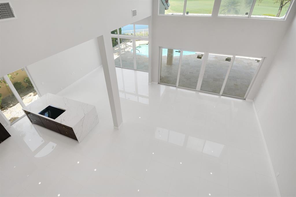 EXPERTLY RENOVATED by Cristian Desata in an exquisite modern design with new roof & new impact windows. Beautiful views of the lake from the pool. 4 bedrooms & 4.5 baths. One of the bedrooms can easily be used as a den or media room. Features include large format Italian porcelain floors, a lush ebony oak staircase with an elegant stainless cable railing. The master bedroom pampers with his & her bathrooms, large free standing soaking tub, a walk-in shower with body jets all in exotic marble. The living room, kitchen & master open to a breathtaking travertine patio/pool overlooking the lake. Elegant European kitchen w/stainless Bosch appliances. Soaring 20' ceilings, a golf cart area,