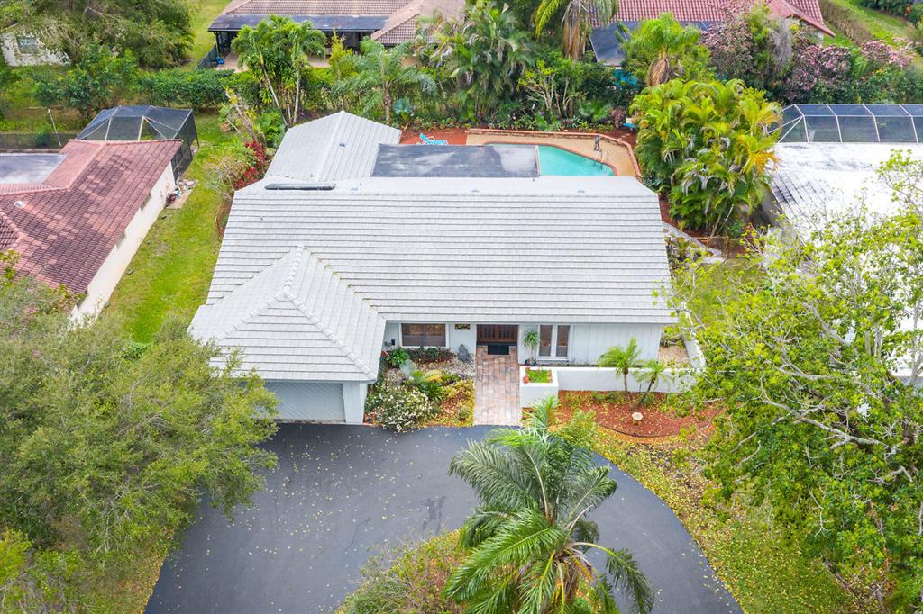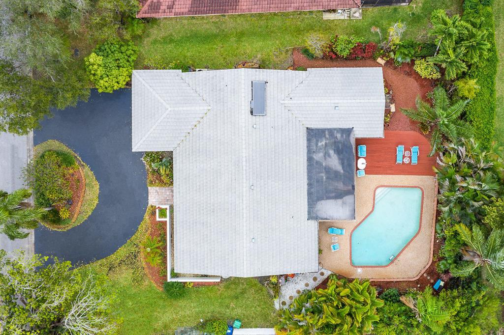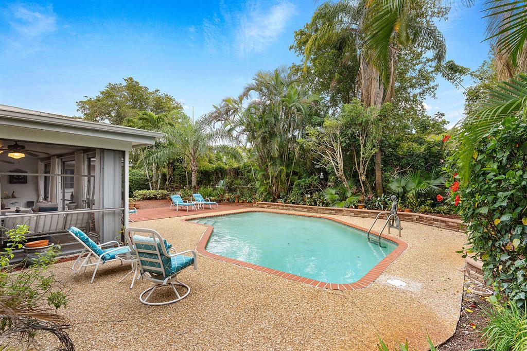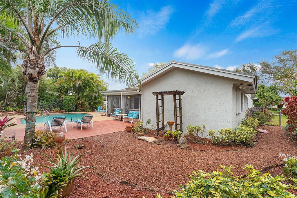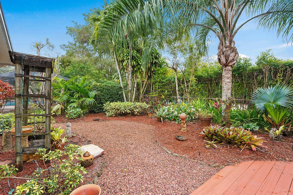 SIMPLY MAGNIFICENT! LUSH LANDSCAPED POOL HOME IN SOUGHT AFTER OAK WOOD! This 4 bedroom, 2 bath home has been immaculately cared for by the same owner for 23 years! Some of the updates and special features include but are not limited to: newly surfaced driveway, accordion shutters, fenced in yard, large private exotic yard with mango tree, pineapple gardens and beautiful orchids. The pool has a brand new skimmer and is completely private. The exterior of house was also just painted. Interior boasts a custom kitchen with built-in lighting, pull outs, granite tops with full splash, stainless appliances and a great pool view. The high ceilings make the already open floor plan feel larger & the exterior doors are upgraded with high-end hurricane proof designer doors equipped with Ring doorbell!