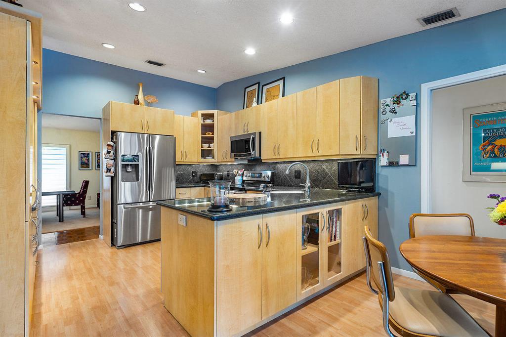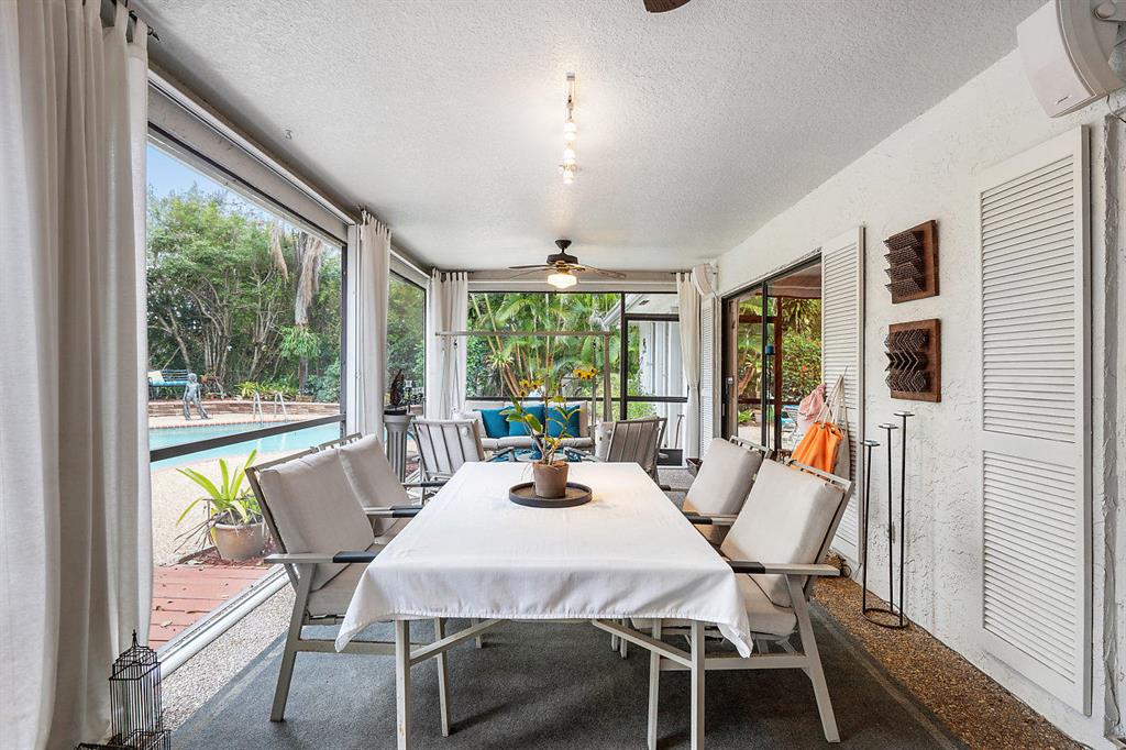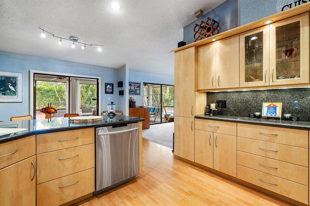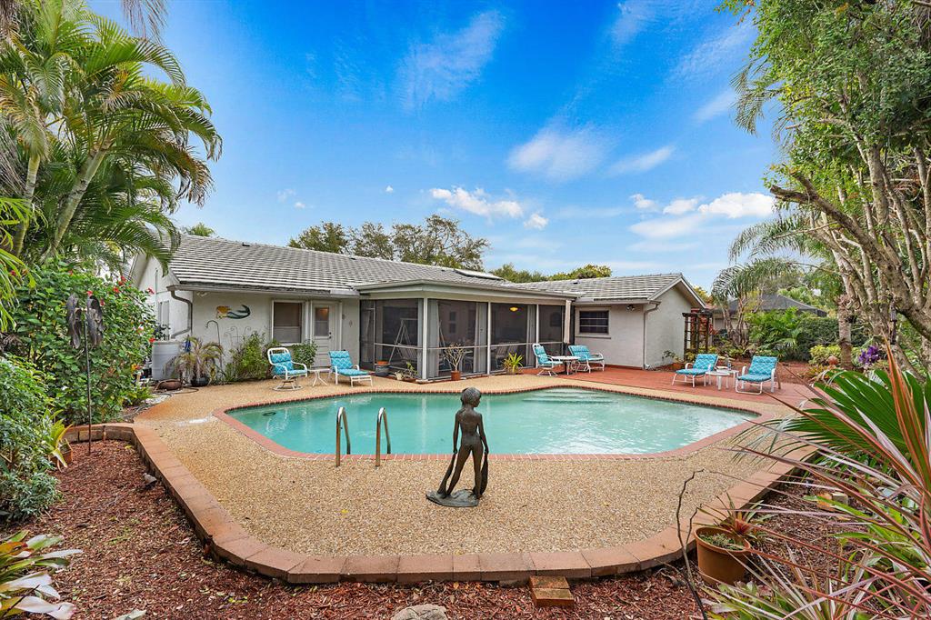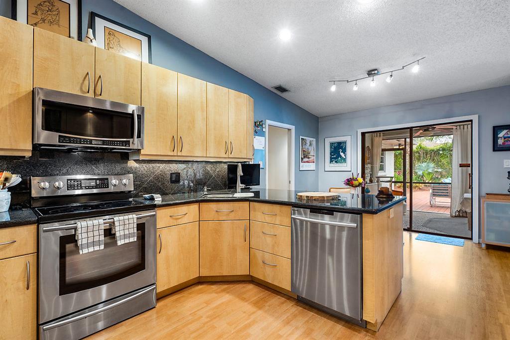 SIMPLY MAGNIFICENT! LUSH LANDSCAPED POOL HOME IN SOUGHT AFTER OAK WOOD! This 4 bedroom, 2 bath home has been immaculately cared for by the same owner for 23 years! Some of the updates and special features include but are not limited to: newly surfaced driveway, accordion shutters, fenced in yard, large private exotic yard with mango tree, pineapple gardens and beautiful orchids. The pool has a brand new skimmer and is completely private. The exterior of house was also just painted. Interior boasts a custom kitchen with built-in lighting, pull outs, granite tops with full splash, stainless appliances and a great pool view. The high ceilings make the already open floor plan feel larger & the exterior doors are upgraded with high-end hurricane proof designer doors equipped with Ring doorbell!