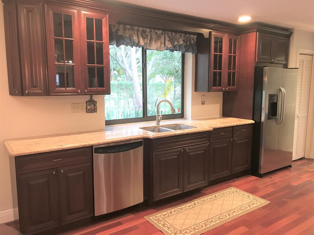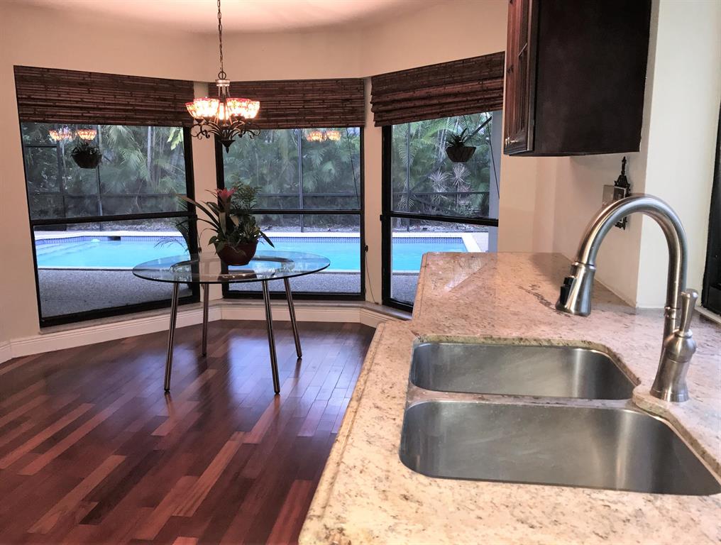 NO SHOWINGS TEMPORARILY THRU END OF MAY DUE TO RENOVATION WORK. From the moment you enter the beautiful shade tree-lined streets of Millpond, you'll feel the serenity of this highly sought after neighborhood in central Boca. This 4 BR/3 BA single-story home on a corner lot has a huge open living area w/cathedral ceilings & skylights. Eat-in kitchen features beautiful granite, custom cabinets & stainless appliances. Large master bedroom opens to pool, has dual vanities & separate shower & tub. Covered patio & screened pool. Millpond has tranquil lakes w/dock & pavilion, picnic areas, parks, playgrounds, tennis & basketball courts. Minutes from Town Center Mall, Mizner Park, many golf courses & A-rated schools.